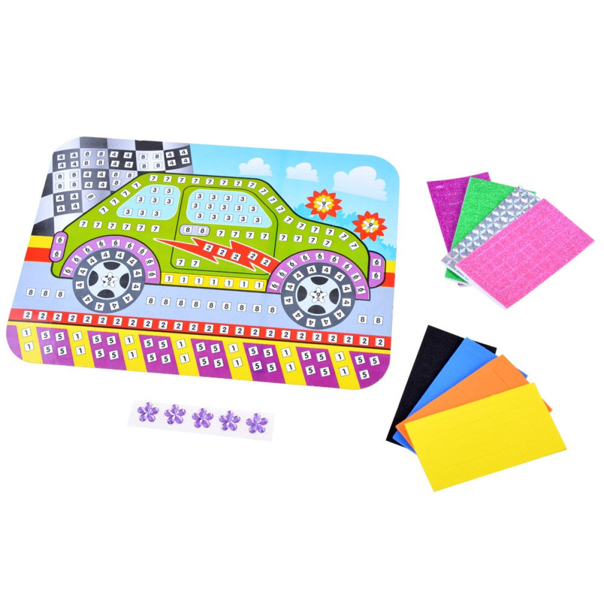 Kreatīvais mozaīkas komplekts mašīna ir ideāls radošs komplekts bērniem, kas mīl mākslu. Tas sastāv no krāsaina attēla, kuram jāpievieno putu kvadrātiņi, pielāgojot krāsas un formas.