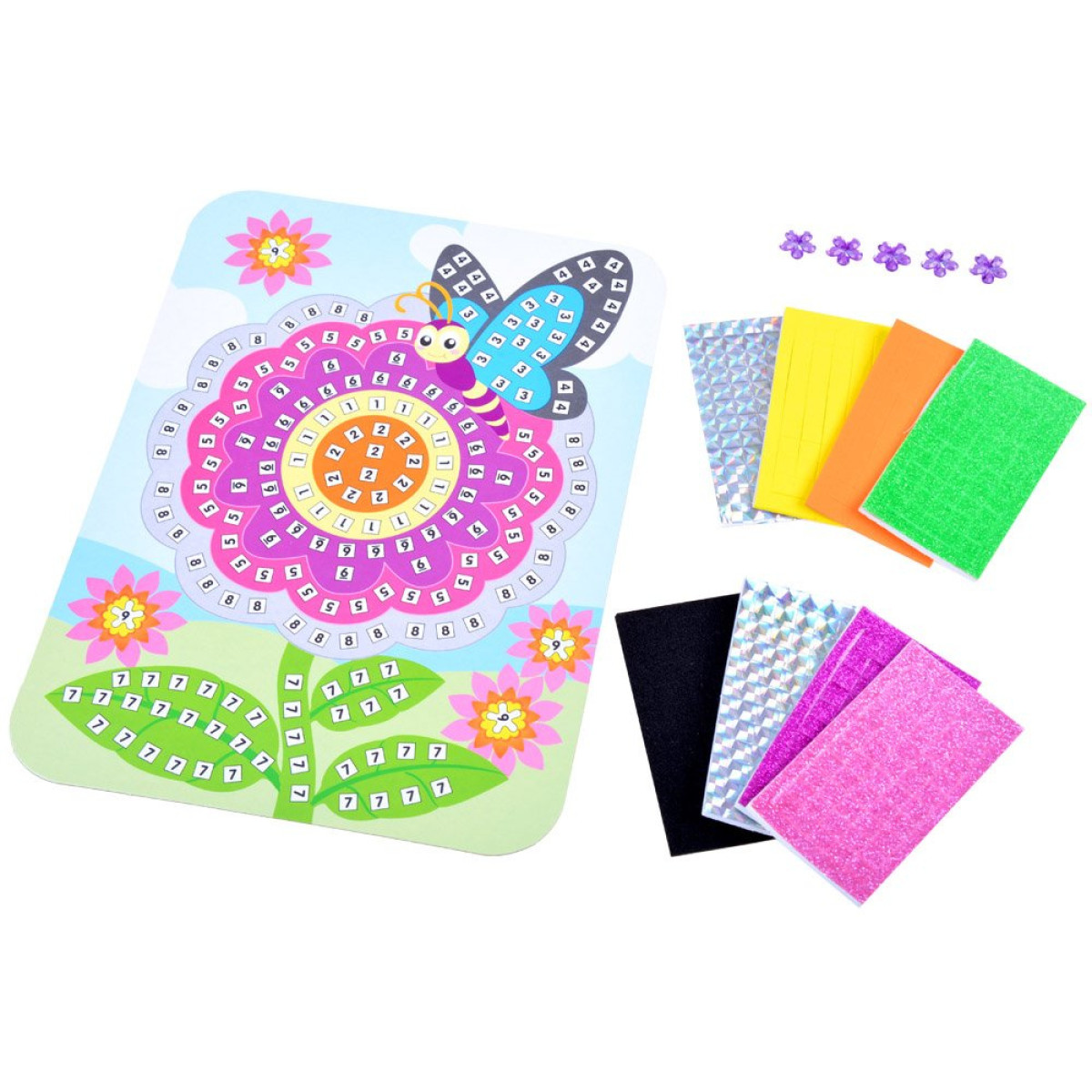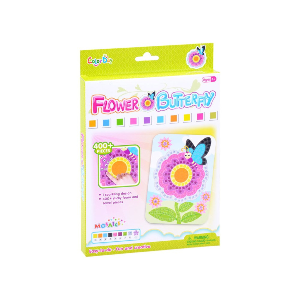 Mozaīkas zieds ar tauriņu ir radošs komplekts bērniem, kuri mīl mākslas darbus. Komplektā ir krāsains attēls, uz kura jāpielīmē putuplasta kvadrātiņi, pielāgojot krāsas un formas.