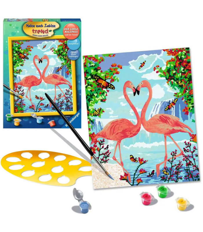 Ravensburger krāsošanas komplekts "Iemīlējušies flamingi" ir ideāla izklaide bērniem un pieaugušajiem, kuri vēlas atklāt savu māksliniecisko talantu.