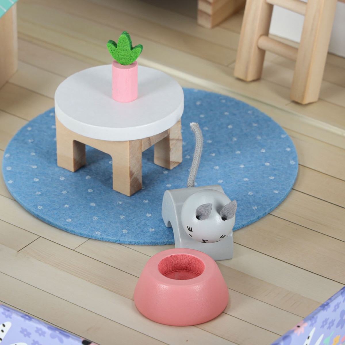 Koferī dzīvo suns un kaķis, kuriem ir savas bļodas, kā arī guļvietas būda un skrāpējams stabs. Dažādi aksesuāri komplektā piedāvā daudz radošu spēļu ideju. Pēc lietošanas visas mēbeles var atkal salikt atpakaļ koferī, kas palīdz uzturēt kārtību.
