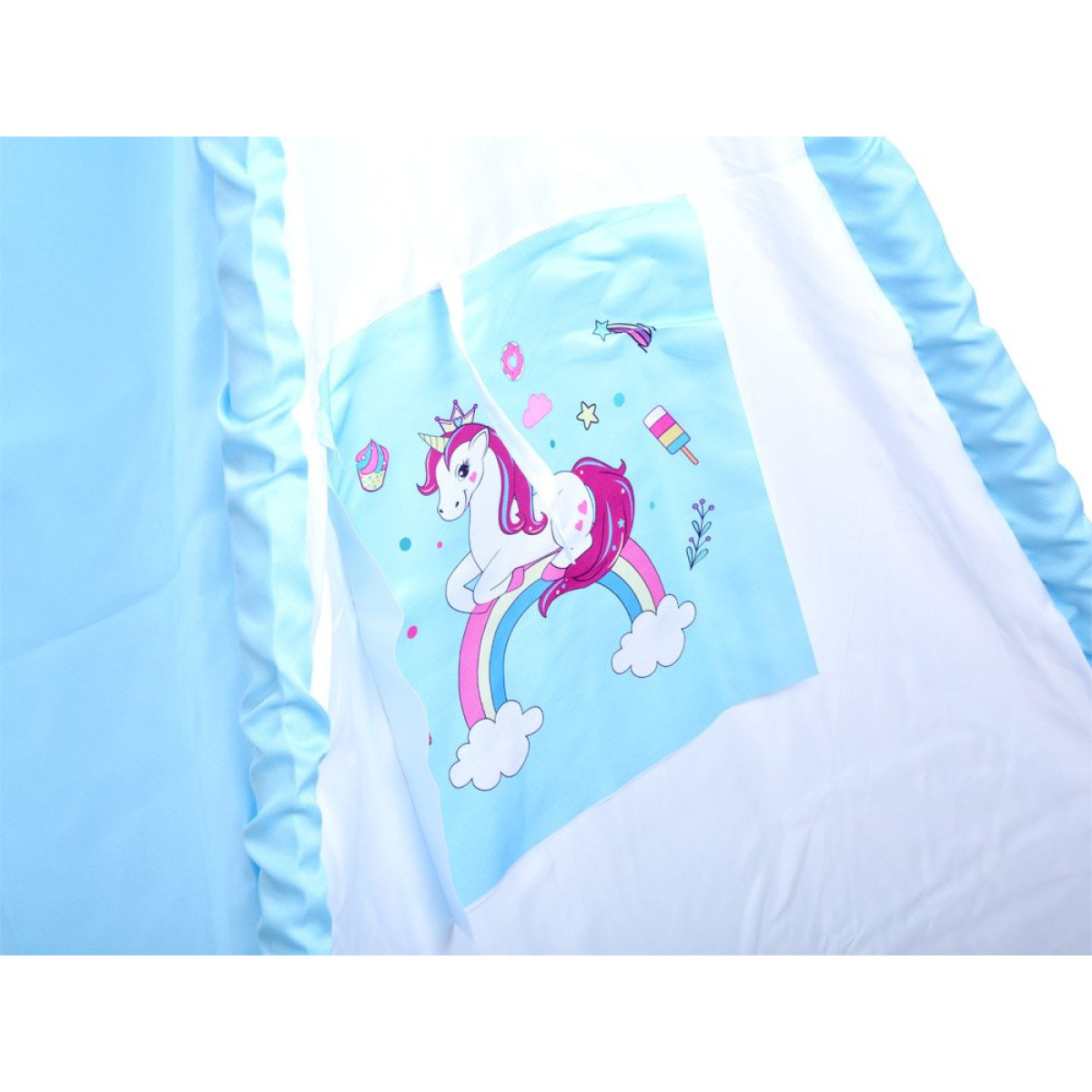 Vienradža stila Tipi telts droši vien iepatiksies katrai meitenei. Bērni mīl glabāt noslēpumus un slepenības, un šāda telts būs ideāla vieta, kur paslēpties un uzglabāt dārgumus. Telts ir izgatavota no viegli tīrāma materiāla, un caurules ir no plastmasas, tāpēc to var viegli uzstādīt jebkurā līdzenā vietā. Tā būs lieliska vieta rotaļām gan istabā ar mīļmantiņām, lellēm, autiņiem, gan dārzā. Telts ir aprīkota ar saitēm, lai nodrošinātu brīvu piekļuvi, kā arī logu, caur kuru var redzēt, vai kāds nevēlams viesis nav tuvu.
