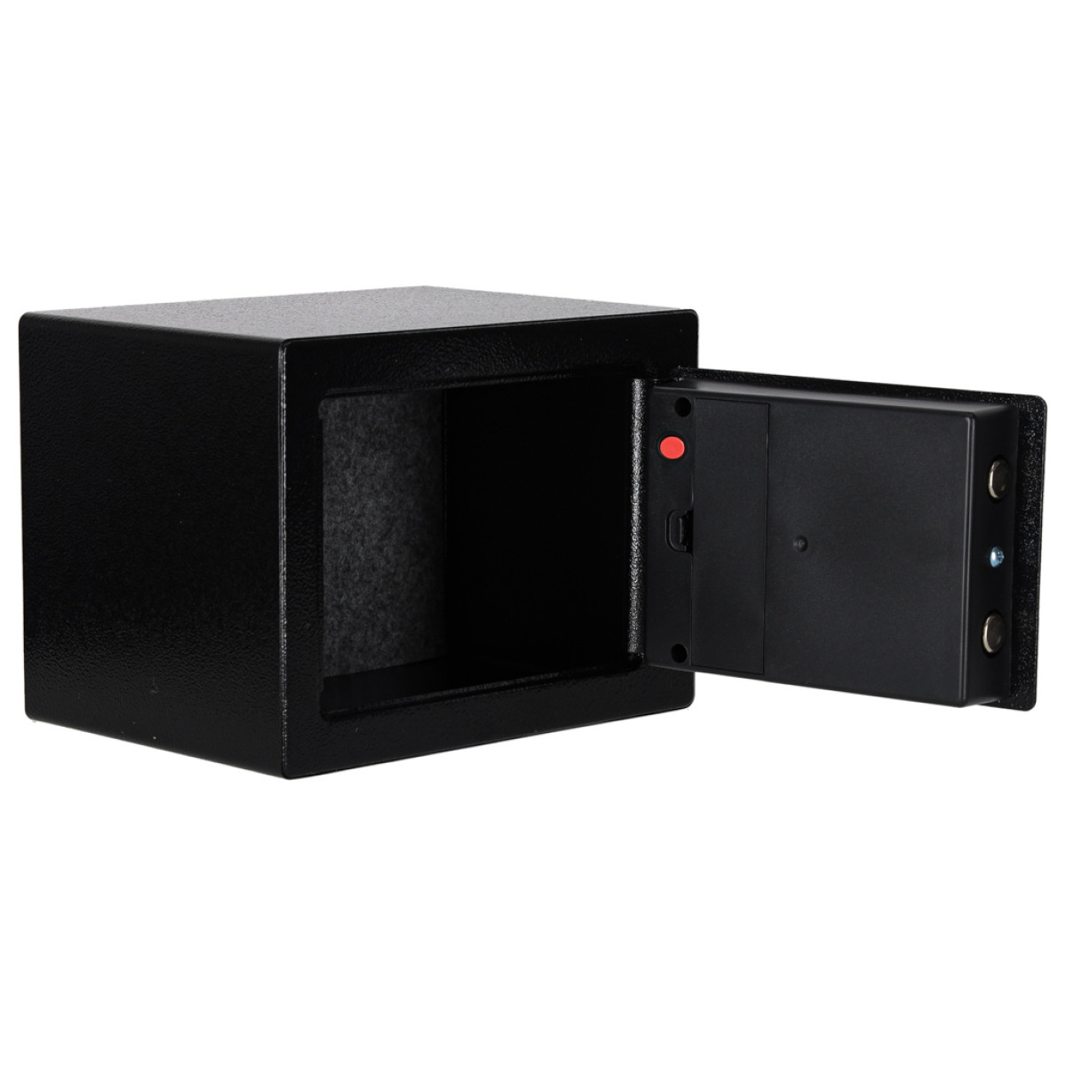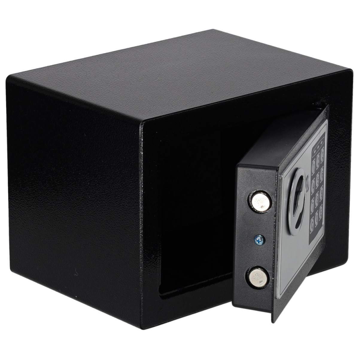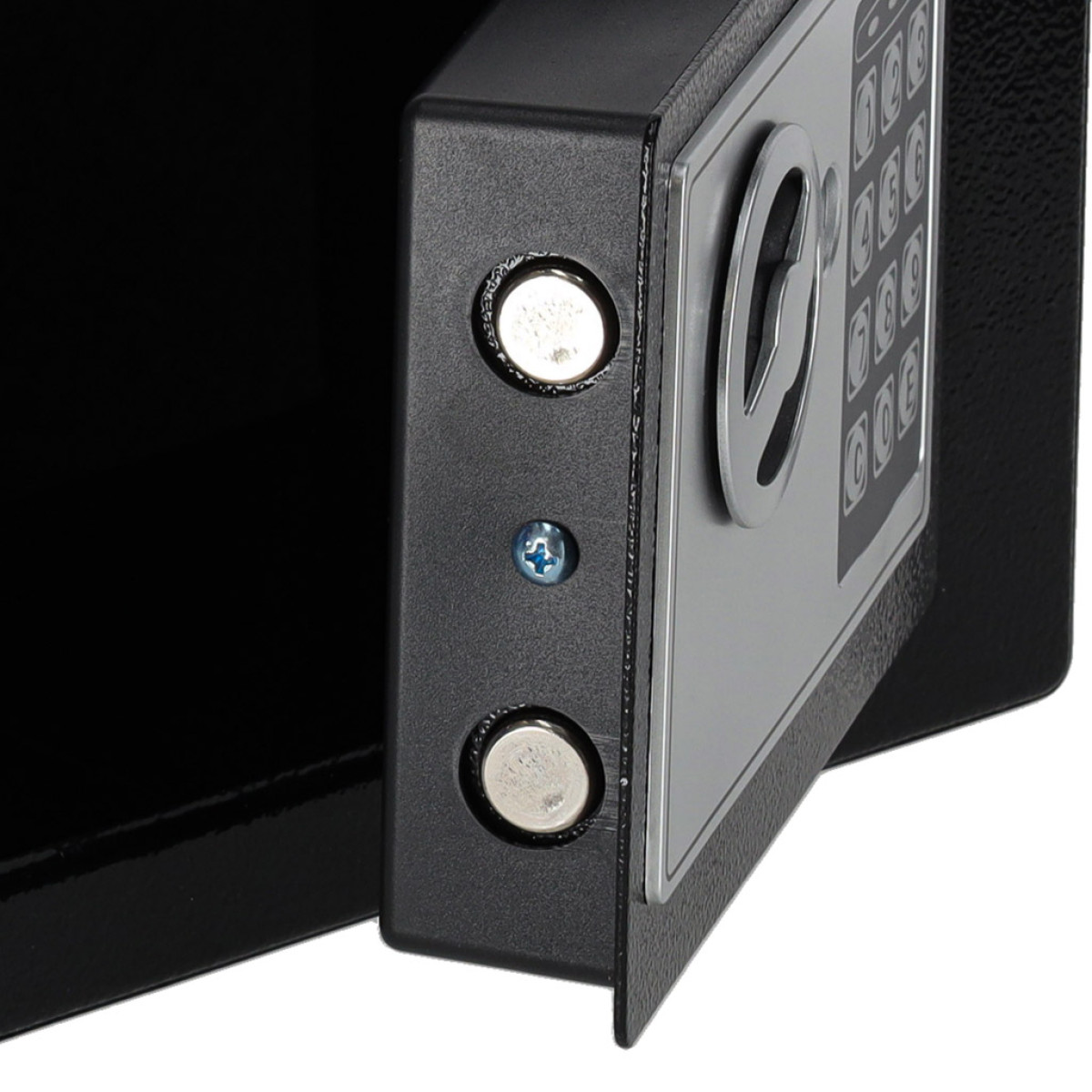 - Var paslēpt vai piestiprināt pie sienas – seifam ir skrūvju caurumi, kas ļauj to piestiprināt pie jebkuras vertikālas virsmas.