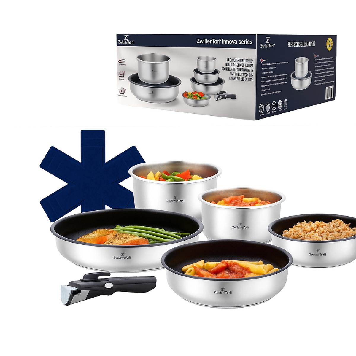 nerūsējošā tērauda katlu un pannu komplekts ar noņemamu rokturi, 9 daļas, zwillentoff zt-31330 ir praktiska un funkcionāla izvēle ērtai ikdienas gatavošanai. Dažādu izmēru trauki ļauj viegli pagatavot dažādus ēdienus – no ātrām brokastīm līdz sātīgām ģimenes pusdienām vai vakariņām. Moderna konstrukcija un universāls dizains lieliski iederas gan mazākās, gan lielākās virtuvēs.