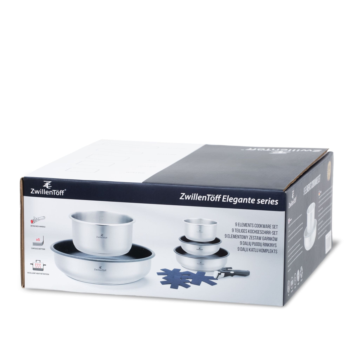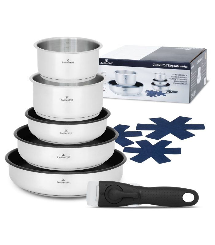 nerūsējošā tērauda katlu un pannu komplekts ar noņemamu rokturi, 9 daļas, zwillentoff zt-31330