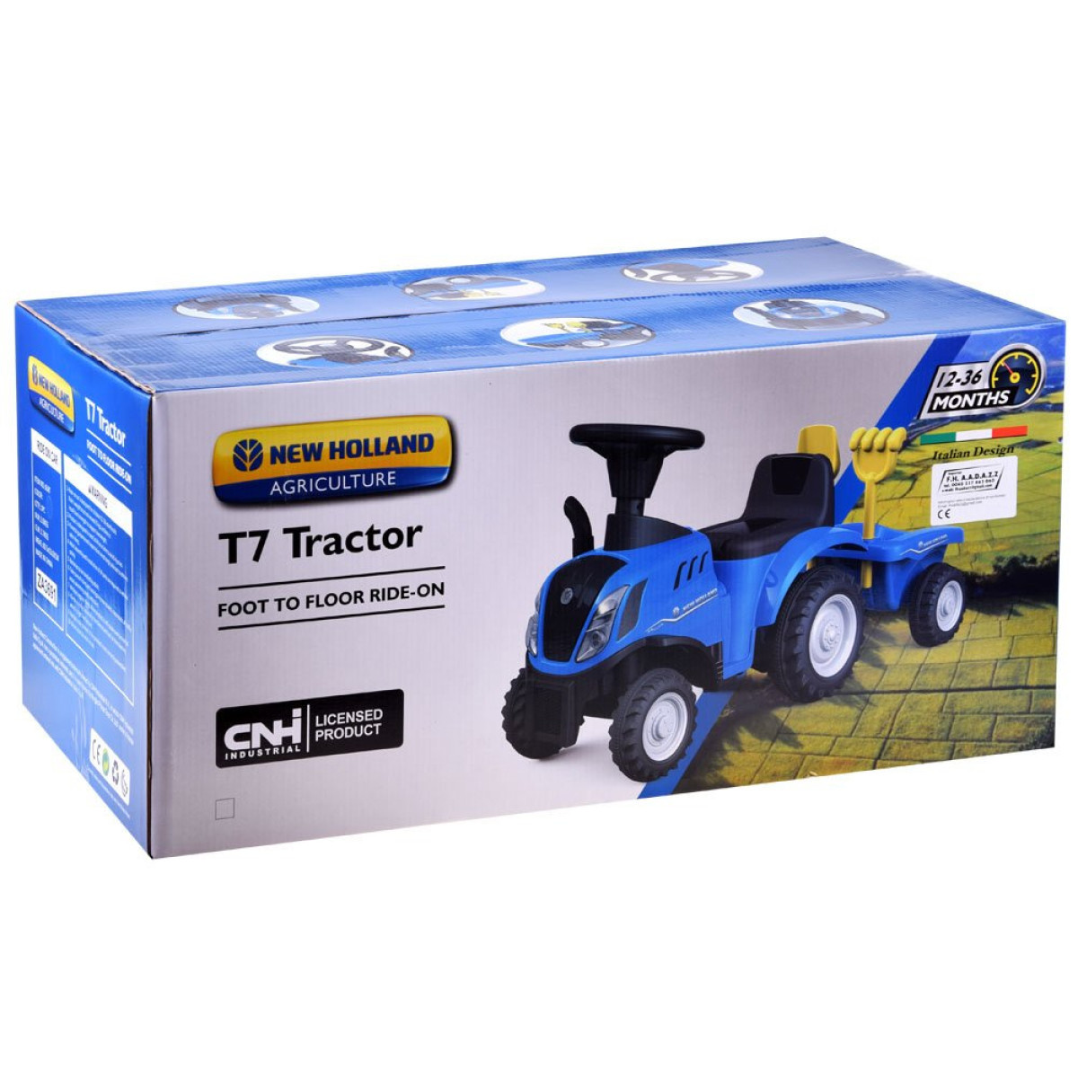 New Holland traktors ar piekabi ir ideāla izvēle kā pirmais transportlīdzeklis bērnam. Šis transportlīdzeklis, kas pilnībā izgatavots no augstas kvalitātes plastmasas, noteikti iepriecinās jebkuru bērnu.