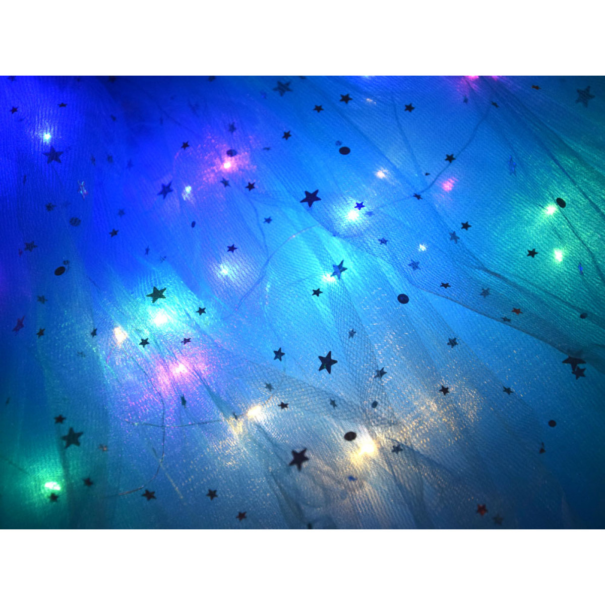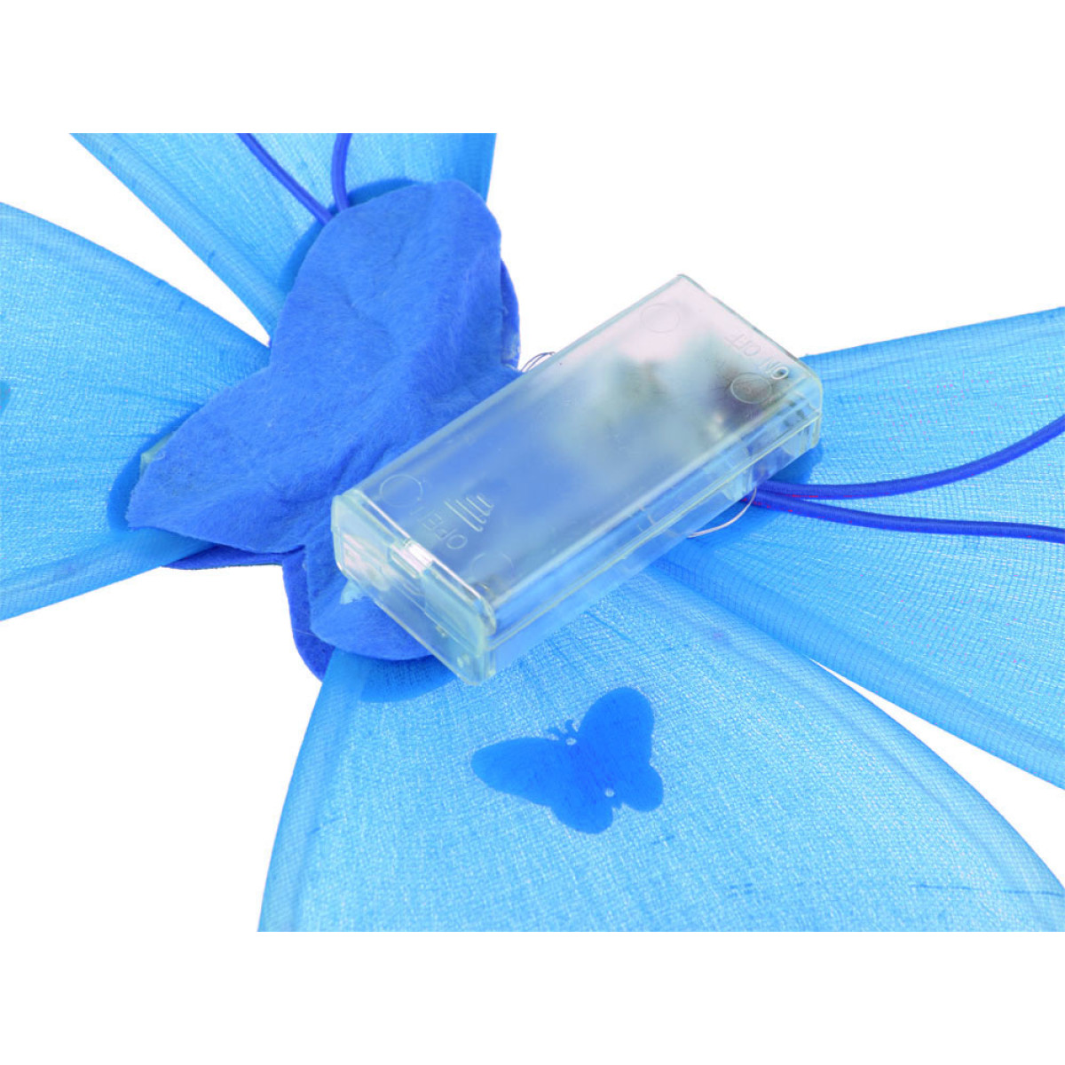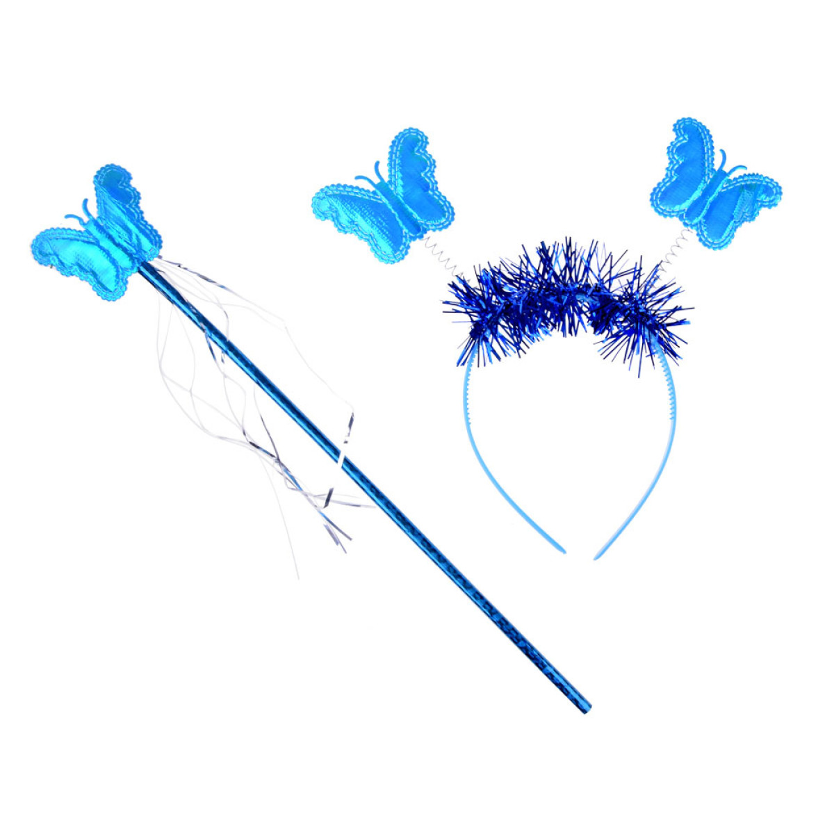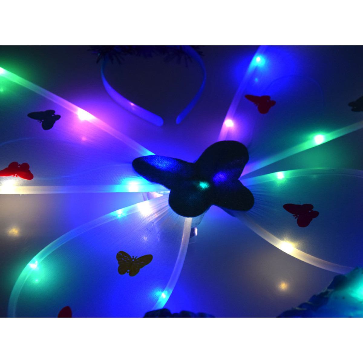 Zilas spīdošs kostīms mazajai fejiņai ar spārniem tauriņš noteikti apburs jebkuru mazu meiteni. Komplektā ietilpst skaista zilas krāsas tilla svārki ar gumiju, pārklāti ar maziem sudraba zvaigznītēm, un zili spārni, pie kuriem piestiprināti mazi krāsaini tauriņi, galvas lente un burvju nūjiņa. Šis skaistais komplekts burtiski spīdēs ballē, dzimšanas dienas svinībās, pateicoties LED gaismām, kas izvietotas svārkos un spārnos.