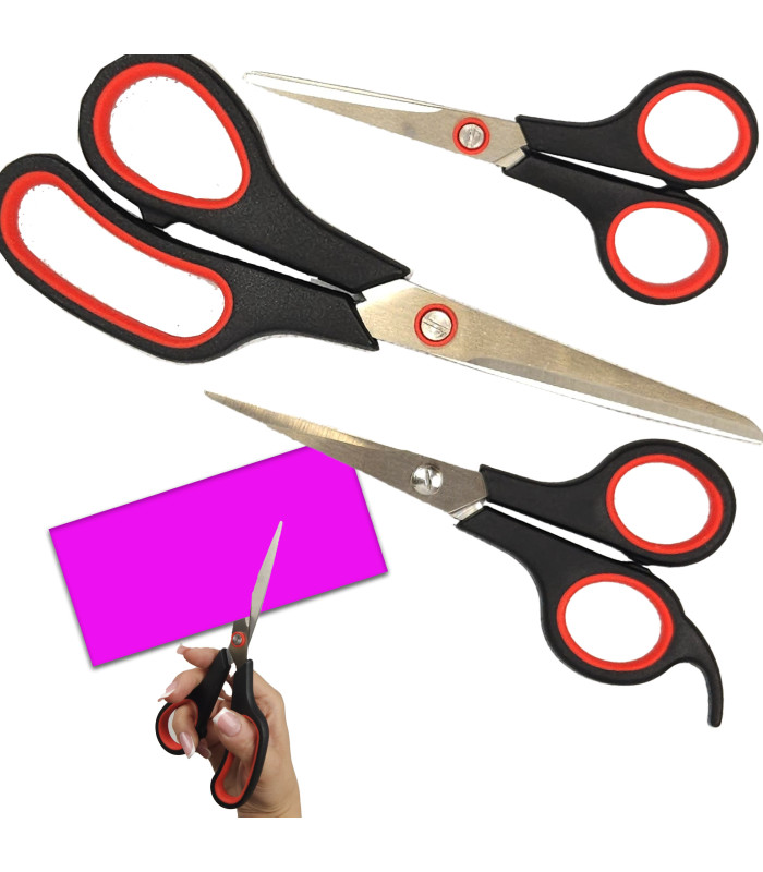 Universālās šķēres komplekts 3 gab., ideāla izvēle katrai mājai un birojam. Šīs klasiskās šķēres ir ārkārtīgi daudzpusīgas un lieliski piemērotas dažādiem griešanas uzdevumiem. Aprīkotas ar augstas kvalitātes nerūsējošā tērauda asmeņiem, tās nodrošina precīzu un tīru griešanu bez materiāla plēšanas. Šķēres ir ergonomiskas un vieglas, padarot tās ērtas ilgstošai lietošanai.