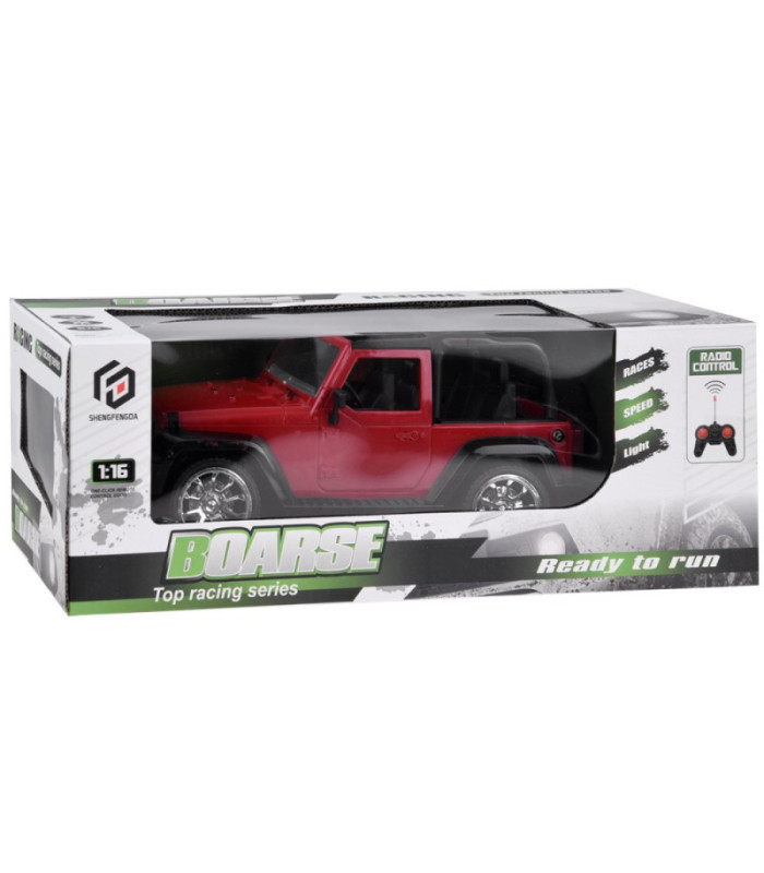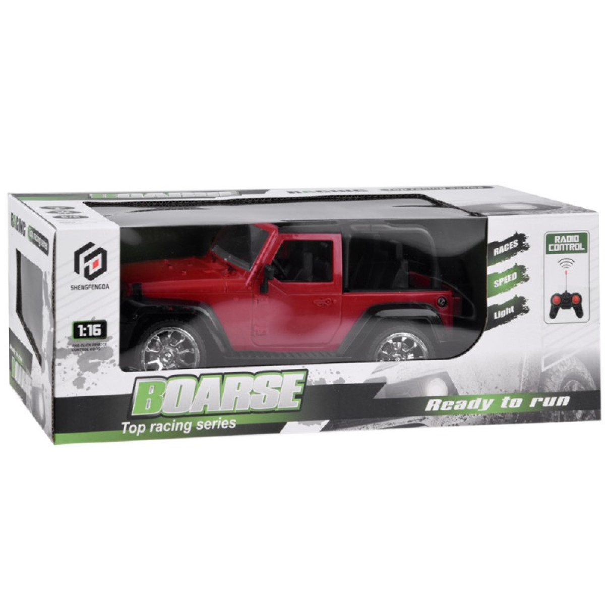 Visureigis, valdomas patogiu nuotolinio valdymo pulteliu, suteiks daug teigiamų pramogų kiekvienam mažam vaikui. Automobilis pagamintas vien iš plastiko geltonos ir juodos spalvos, automobilio ratai ant protektoriaus yra guminiai, kurių dėka transporto priemonė puikiai laikysis prie žemės. Formingas visureigio siluetas efektyviai reprezentuos save įvairiuose mažojo vairuotojo paruoštuose maršrutuose, o važiuojant šviečiančios šviesos nušvies trasą.