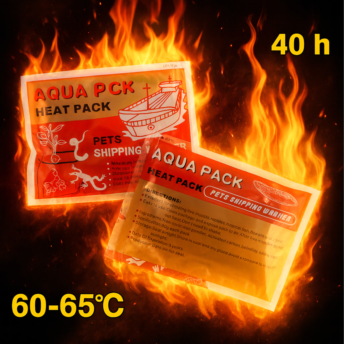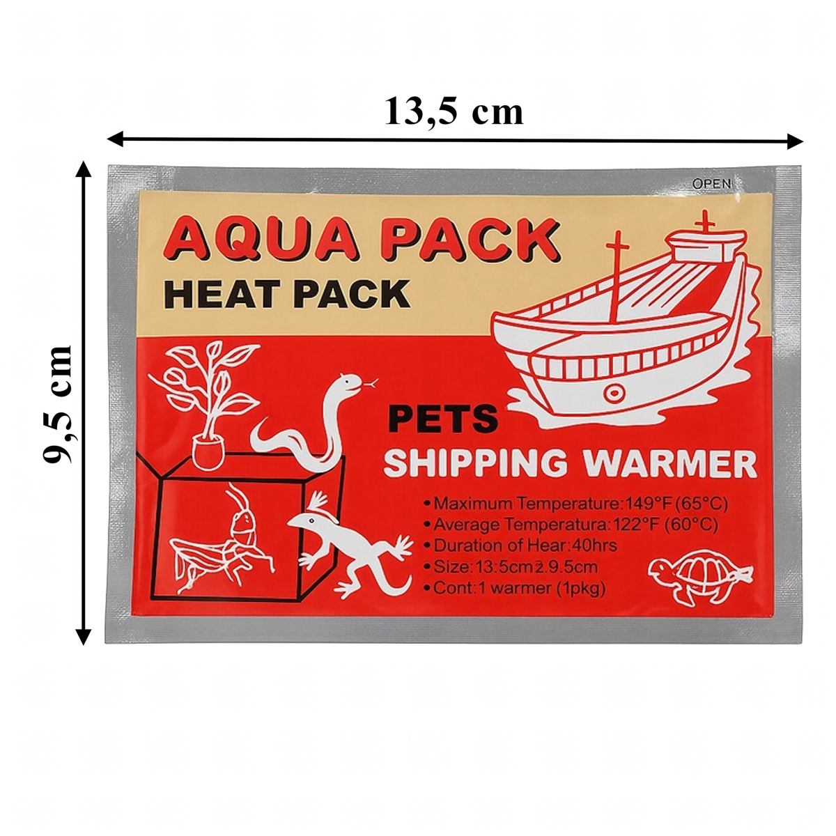 Aqua Heat Pack GOLD ir uzlabota klasiskā sildītāja versija, kas nodrošina pastāvīgu siltumu līdz pat 40 stundām! Ideāli piemērots eksotisko dzīvnieku, zivju, rāpulīšu, abinieku, kukaiņu vai tropisko augu transportēšanai, kā arī roku, kabatu vai jakas iekšpuses sildīšanai aukstās dienās. Temperatūra 60-65°C (+/-1°C) nodrošina drošību un komfortu, neradot pārkaršanas risku. Netoksisks, ekoloģisks un drošs cilvēkiem un dzīvniekiem – neaizstājams ziemas ekspedīcijās, darbā ārpus telpām vai ceļojumos.