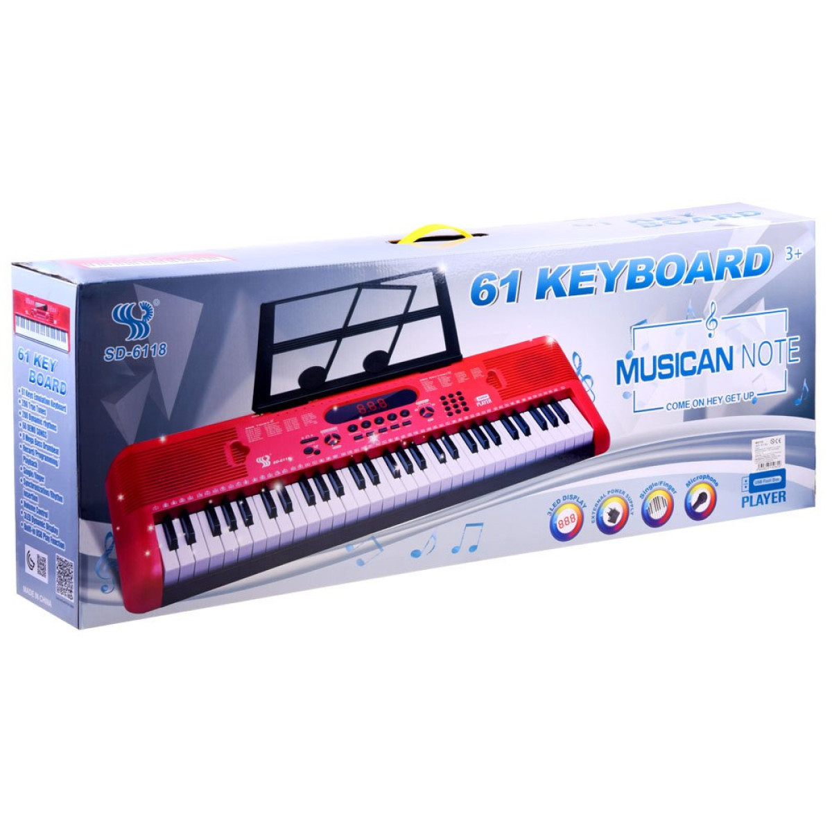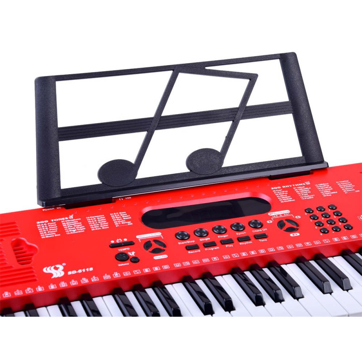 Sarkans keyboard SD-6118 ar mikrofonu piedāvā daudz lielisku funkciju un modernu dizainu. Orgāns ir rūpīgi izstrādāts ar skaistu sarkanu krāsu un nodrošina tīru un patīkamu skaņu. Keyboard ar 61 taustiņu ir piemērots iesācēju mūziķiem un amatieriem, palīdzot sākt mūzikas piedzīvojumu un attīstīt prasmes. Tas garantē daudz jautrības un mācīšanās stundu, kā arī lieliski piemērots mājas ballītēm vai skolas uzstāšanās. Pateicoties iekļautajam mikrofonam, varat baudīt karaoke, dziedāt un spēlēt savas dziesmas. Turklāt tam ir USB ieeja, kas ļauj pieslēgt MP3 formāta mūzikas pavadījumus. Produkts ir viegls un ērti pārnēsājams. Keyboard piemērots bērniem vecākiem par 36 mēnešiem.