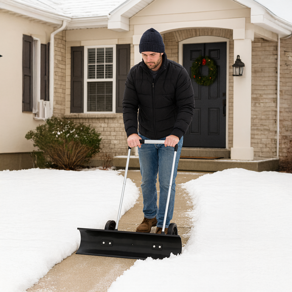 Rokas sniega lāpsta uz riteņiem padara smagu sniega tīrīšanu par ātru, vienmērīgu sniega noslīdēšanu uz sāniem. Integrētie riteņi samazina berzi un piepūli, ļaujot jums strādāt efektīvāk un ērtāk. Regulējams kāta garums pielāgo rīku jūsu augumam un samazina muguras slodzi. Izturīgi materiāli (polipropilēns, ABS, tērauds) nodrošina izturību ziemas apstākļos.