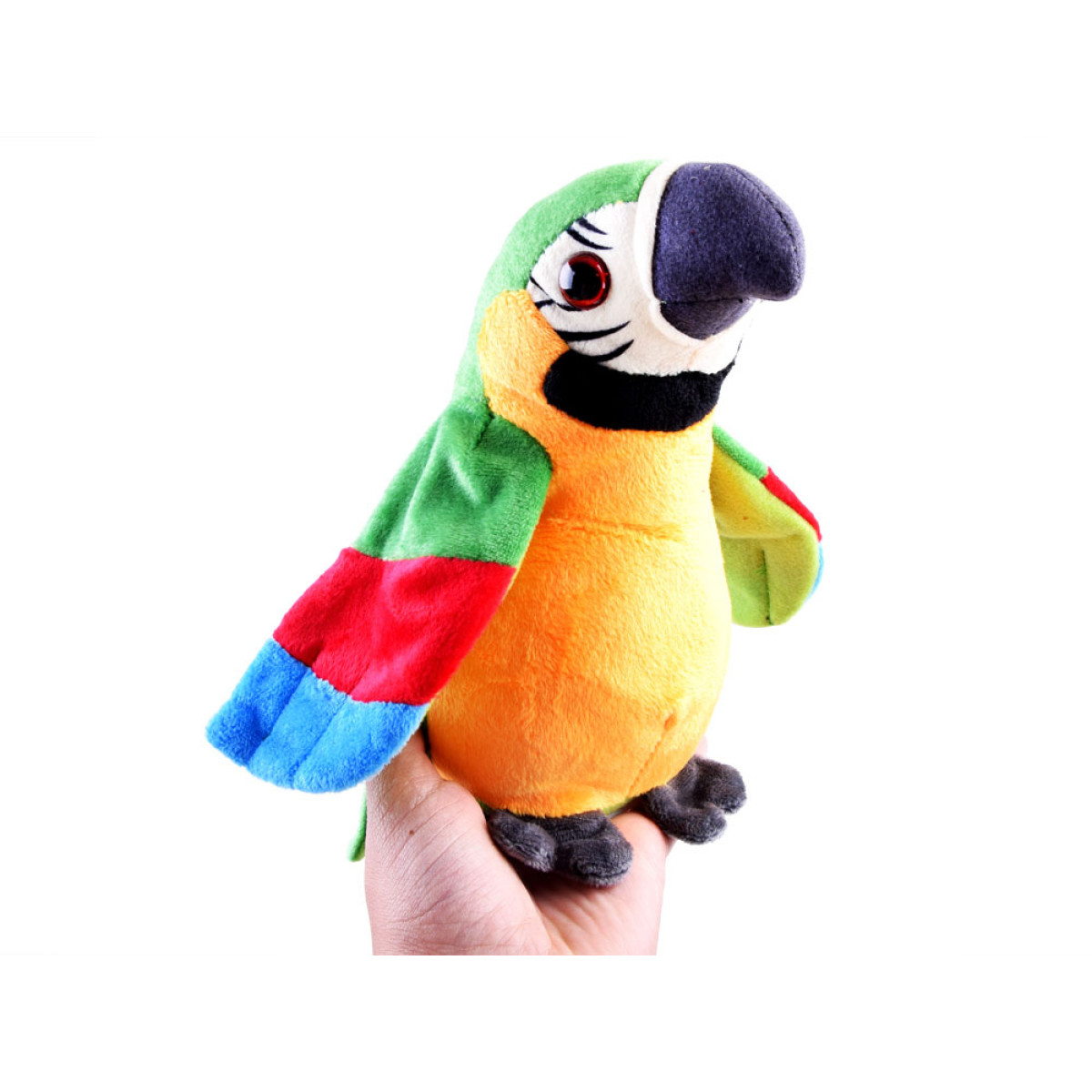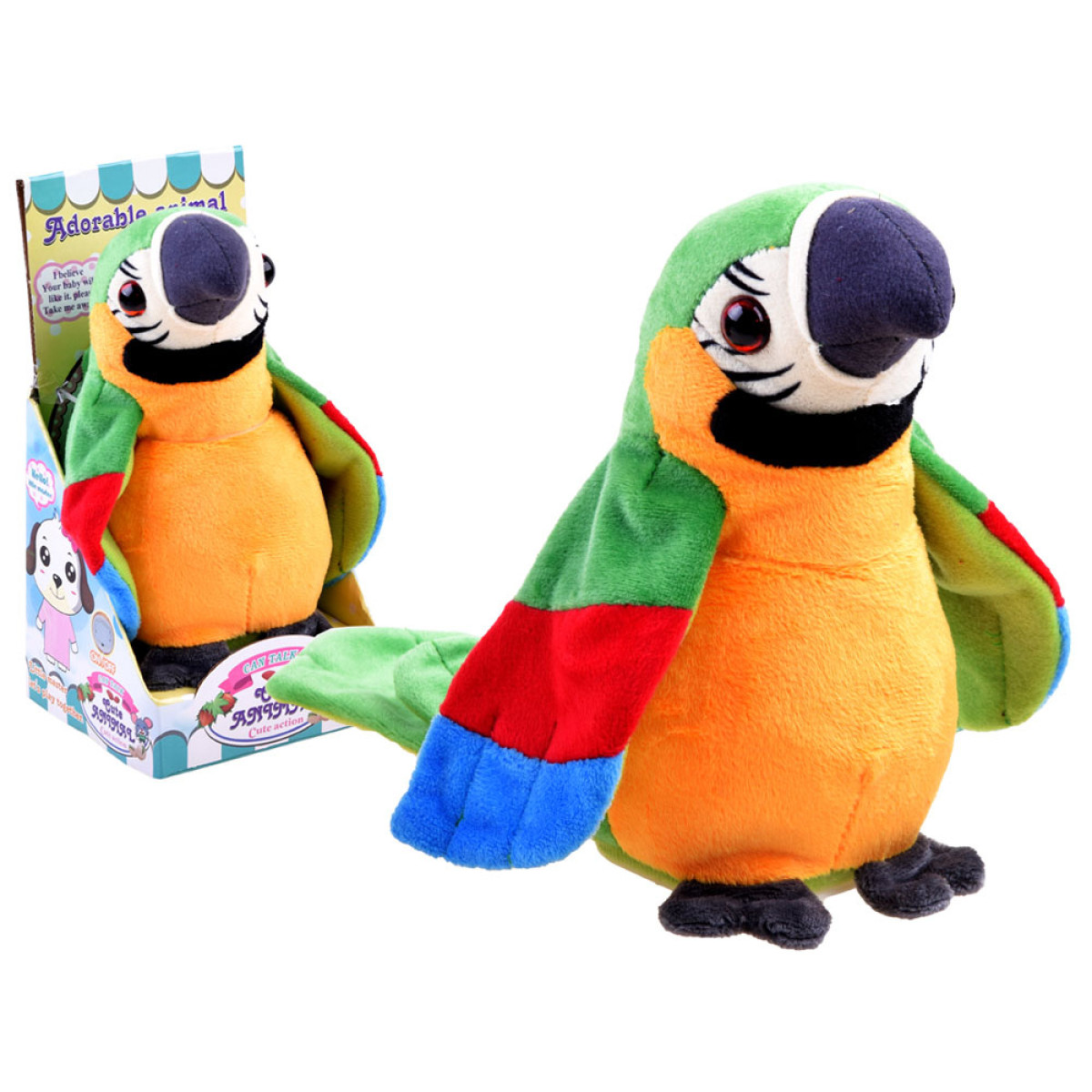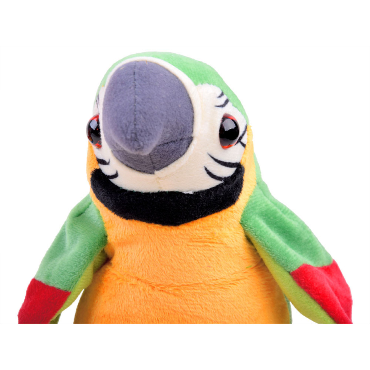 Krāsainā, plīša papagailis atkārtos visu, ko jūs sakāt! Burvīgs, krāsains putns ar spēju atskaņot teikto komiskā veidā.