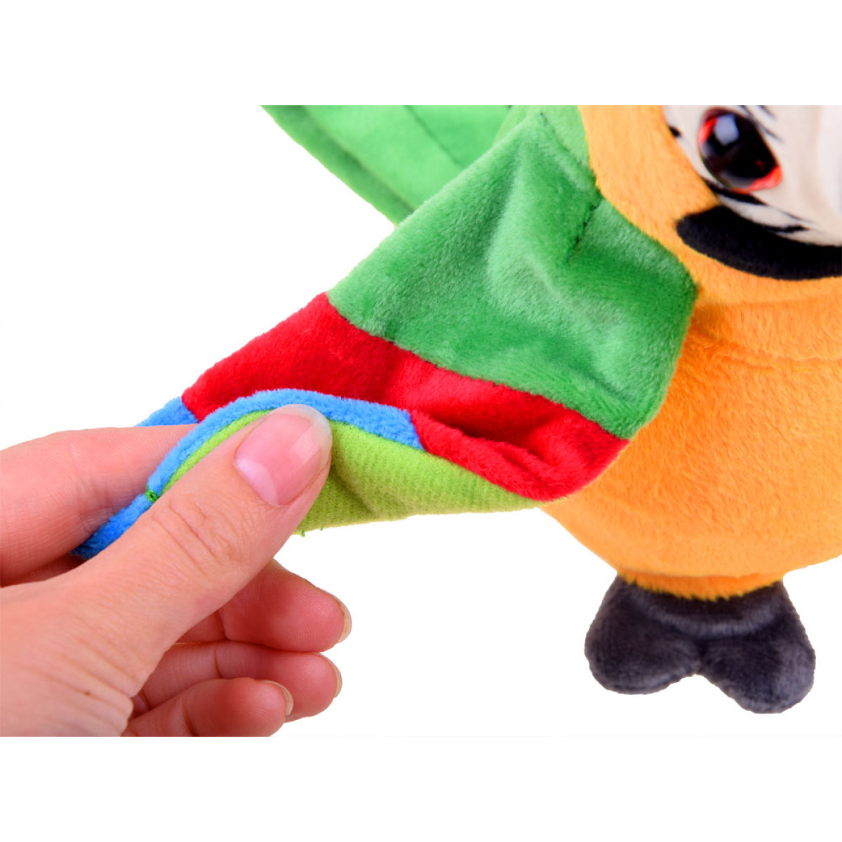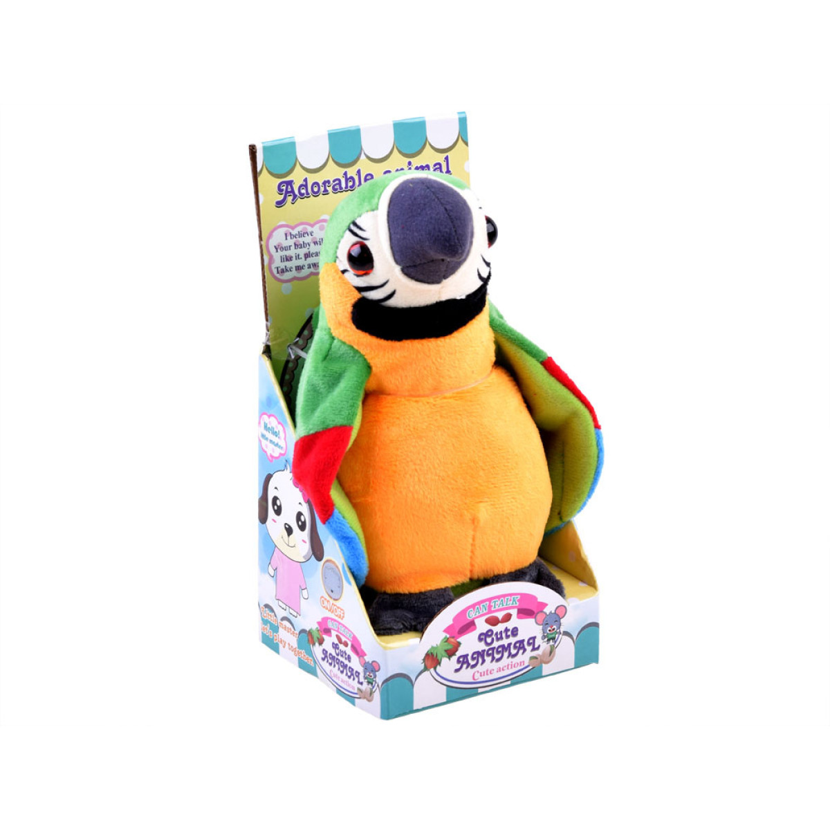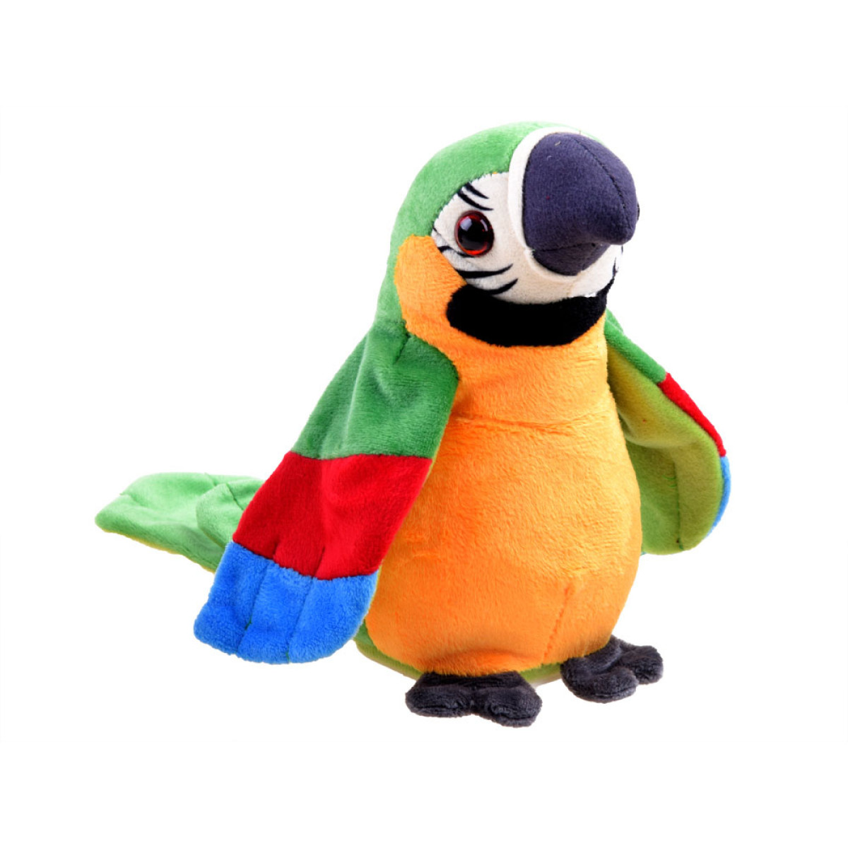 Krāsainā, plīša papagailis atkārtos visu, ko jūs sakāt! Burvīgs, krāsains putns ar spēju atskaņot teikto komiskā veidā.