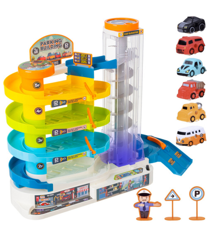Mēs piedāvājam unikālu Iso Trade autostāvvietu, kas aizvedīs jūsu bērnu uz spēles un iztēles attīstības pasauli. Spirālveida lifts ar manuālu vai elektrisku automašīnu pacelšanu ļauj automašīnām ātri nokļūt augšējā līmenī, pēc tam tās nolaižas pa visu piecstāvu trasi tieši uz liftu. Šī ir lieliska rotaļlieta bērniem no 3 gadiem, apvienojot spēli ar kustības un koordinācijas principu apguvi.
