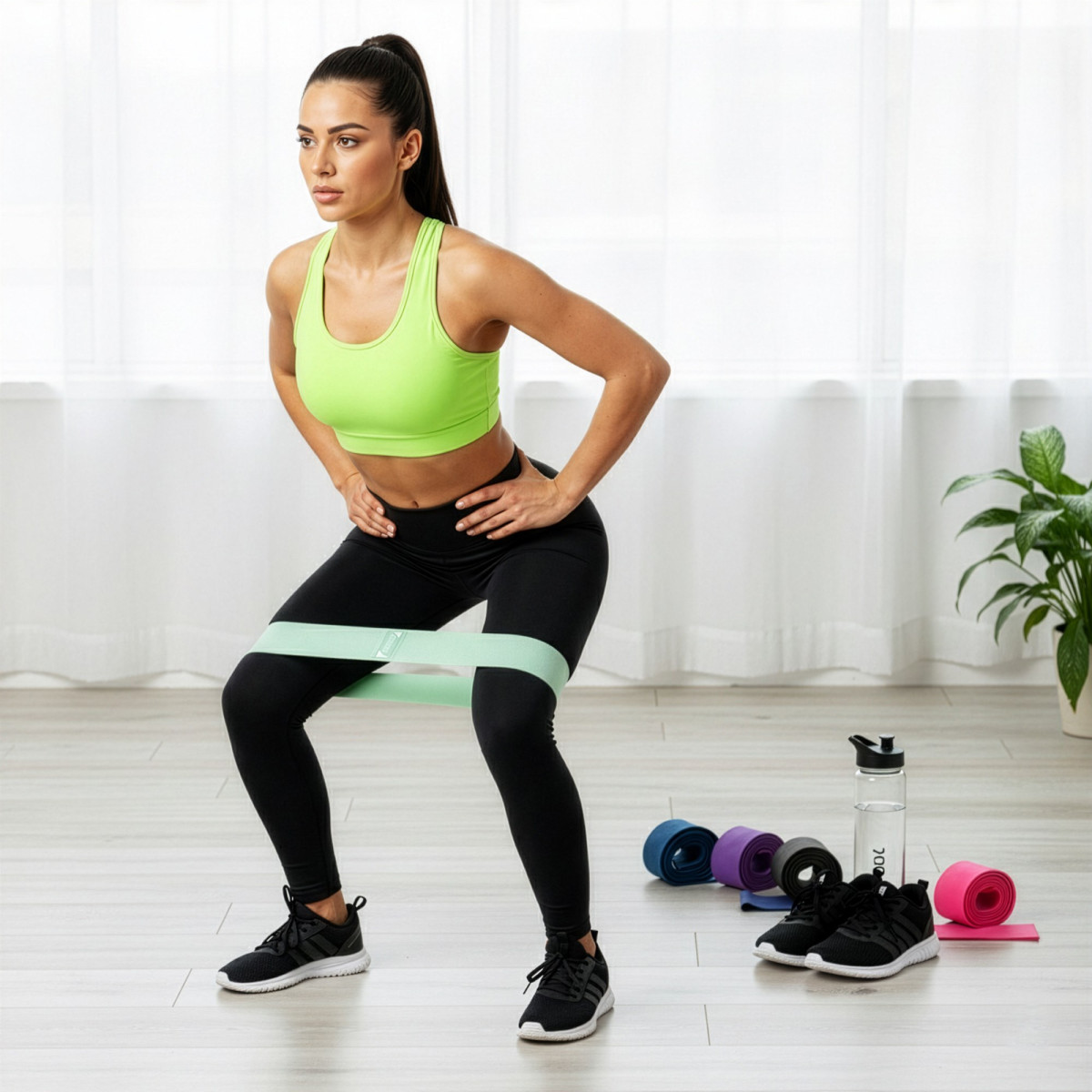 Izbaudiet efektīvu un daudzpusīgu treniņu ar pretestības gumiju komplektu. Komplektā ietilpst trīs dažādu izmēru gumijas: