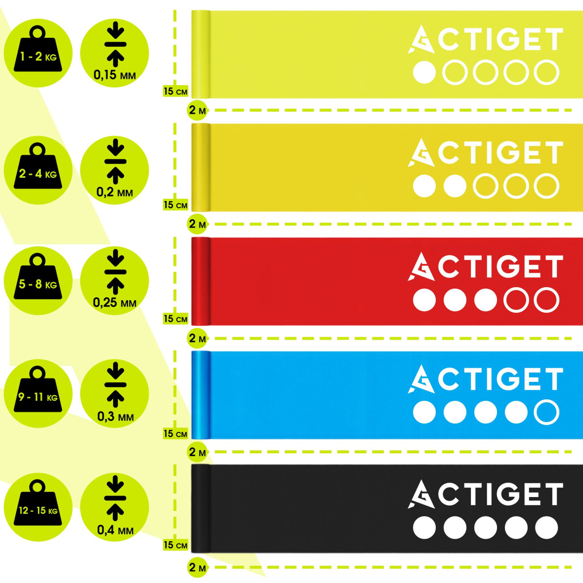 Pretestības gumiju komplekts vingrošanai 5 gab. ACT0106