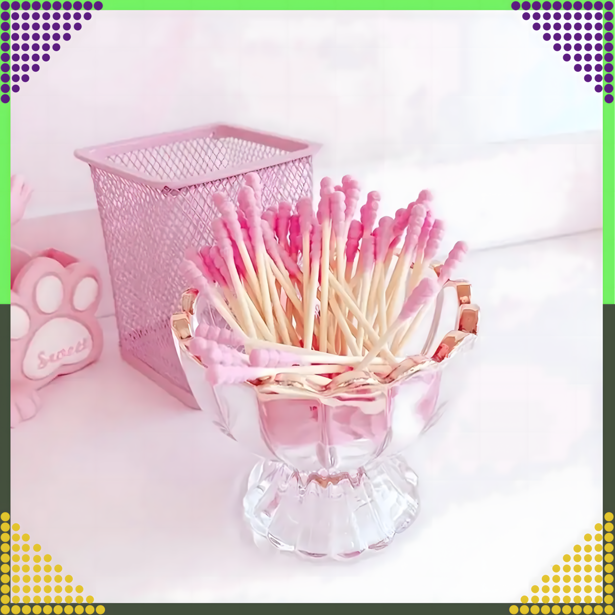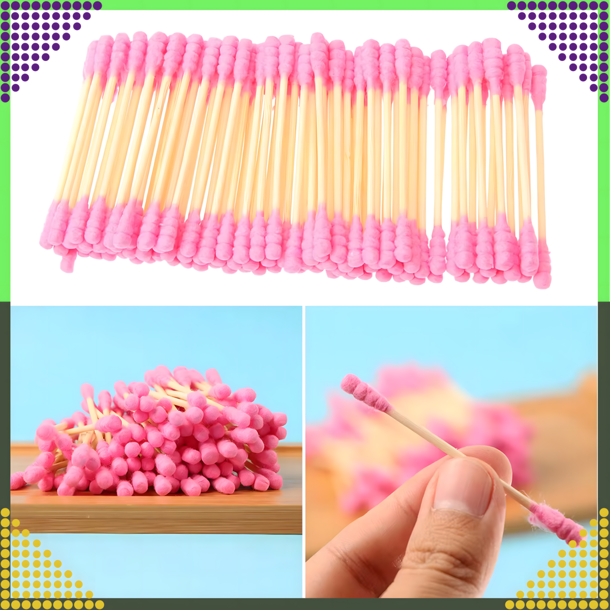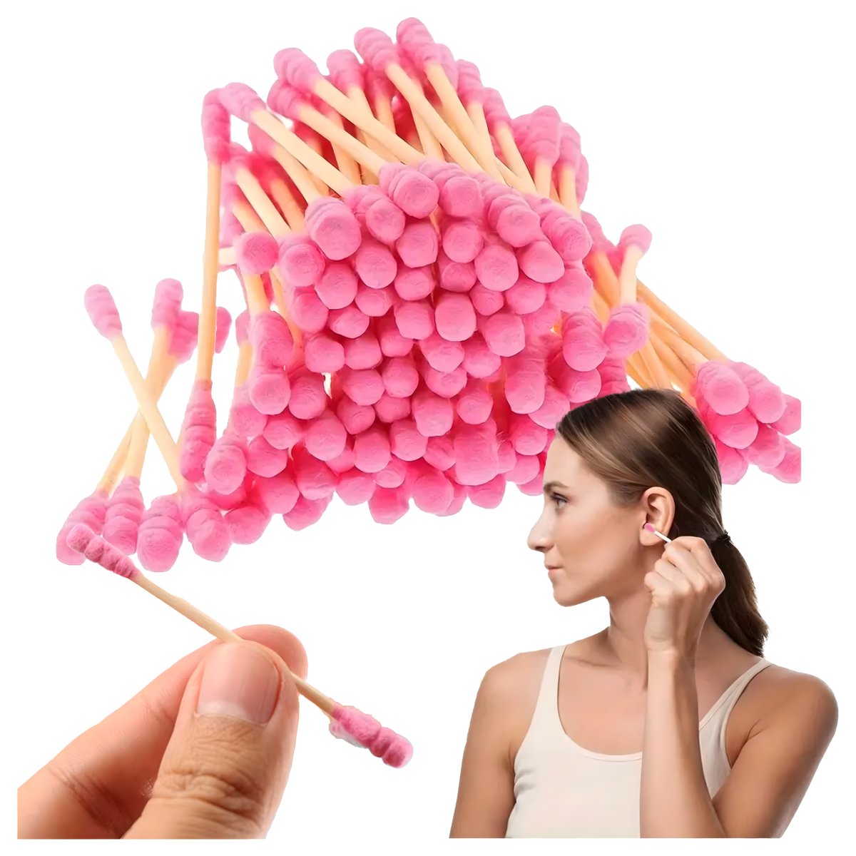 Koka higiēniskie kosmētiskie kociņi ausīm 100 gab rozā