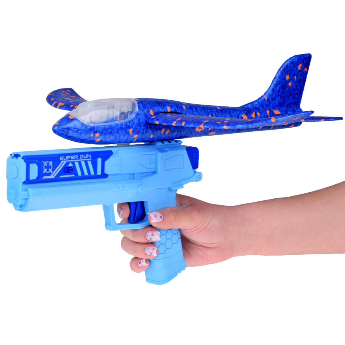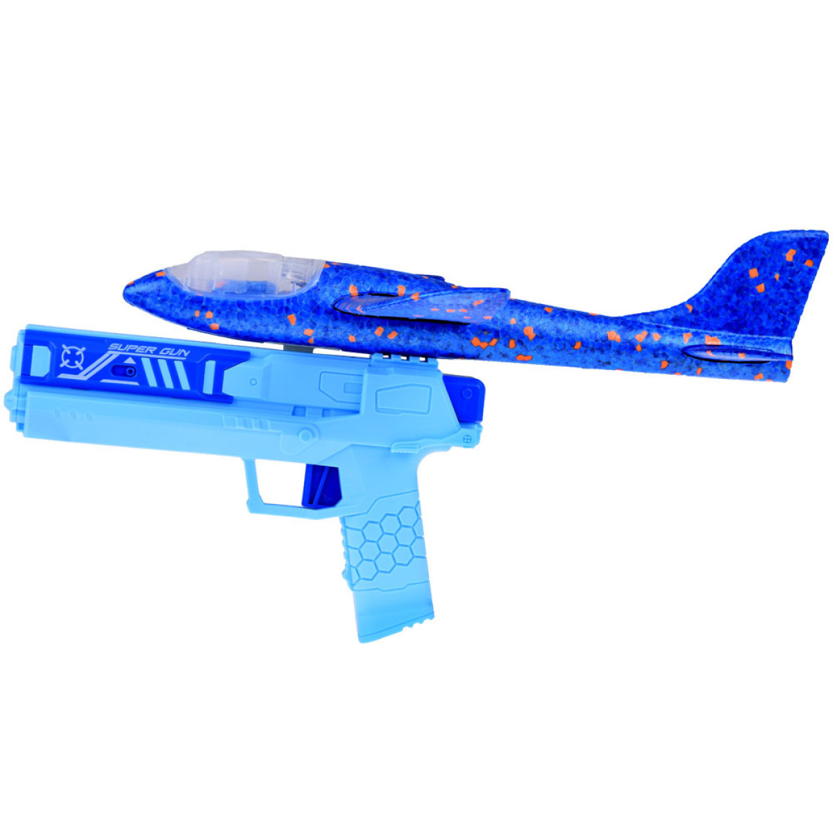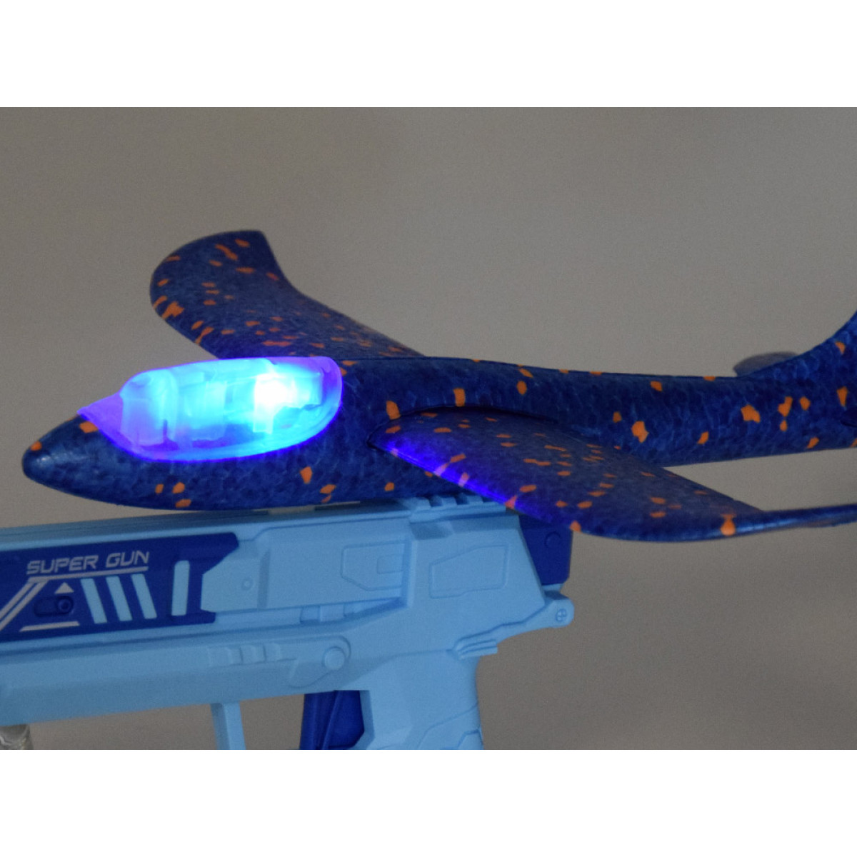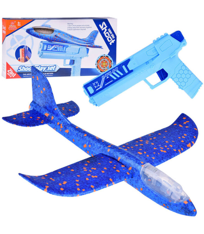 Putas lidmašīna ar LED gaismām izšaujama no pistoles ir rotaļlieta, kas iepriecina katru bērnu, kuram patīk jautras rotaļlietas. Lidmašīna ir veidota no putuplasta un ir zilā krāsā, aprīkota ar LED gaismām, kas iedegas rotaļas laikā, radot lielisku vizuālo efektu. Pistole ir izgatavota no plastmasas, arī zilā krāsā, ar sprūdu, kas ļauj izšaut lidmašīnu uz priekšu. Rotaļāšanās ar šo rotaļlietu rada patiesi daudz emociju un smieklu!