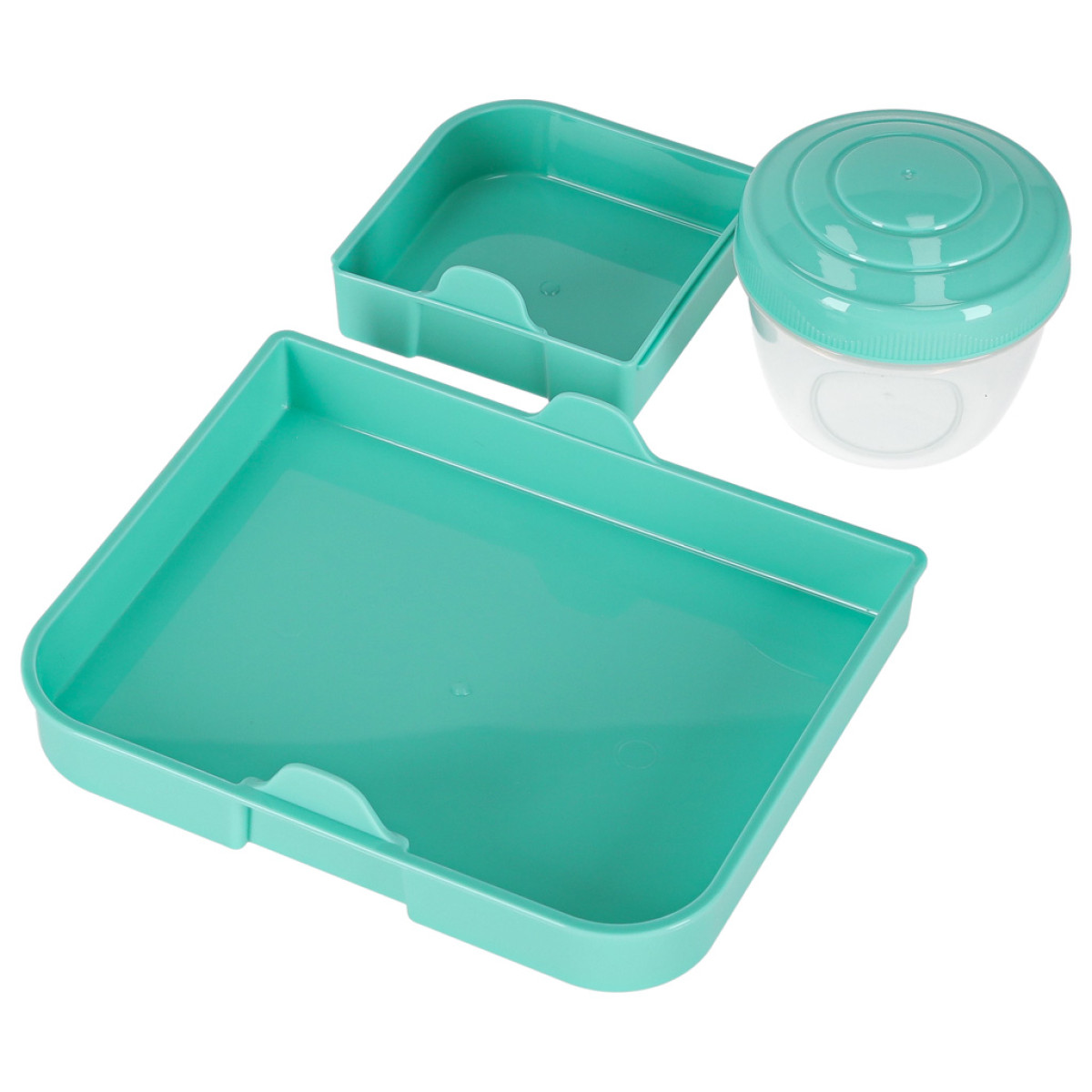 - Gudrs nodalījumu izkārtojums - trīs atsevišķas sekcijas un atsevišķs cieši noslēgts trauks mērcei vai jogurtam (150 ml) nodrošina, ka ēdiens paliek svaigs un nemaisās savā starpā