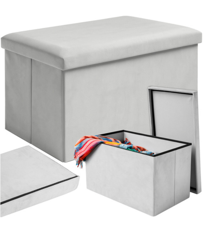 Pelēks velūra pufs ar uzglabāšanas nodalījumu no zīmola RUHHY ir praktisks un stilīgs risinājums jūsu interjeram. Apvilkts ar ūdensizturīgu velūru un pastiprināts ar MDF, tas piedāvā mīkstu sēdvietu un ietilpīgu uzglabāšanas nodalījumu ar 54 litru kapacitāti – ideāli piemērots mazām lietām, rotaļlietām vai segām. Saliekamā konstrukcija, augsta kvalitāte un maksimālā slodze padara šo pufu par funkcionālu un elegantu izvēli, kas iederēsies dzīvojamajā istabā, guļamistabā vai priekšnams.