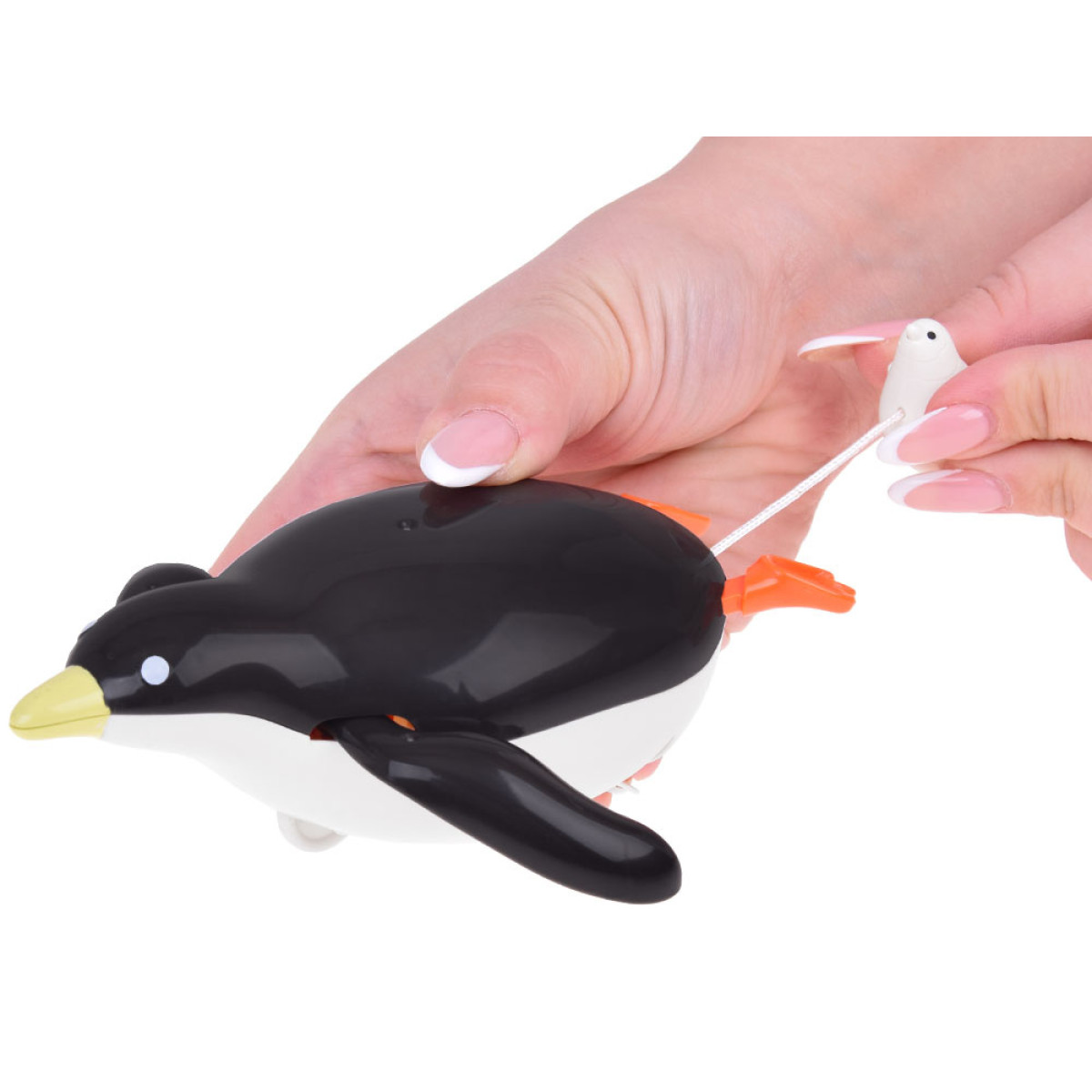 Rotaļlieta ir izgatavota no izturīga un droša plastmasas, kas ir piemērots bērniem. Pēc pingvīna uzvilkšanas, tas sāk peldēt ūdenī, kustot spārniem un kājām, kas iepriecinās jebkuru mazu bērnu.