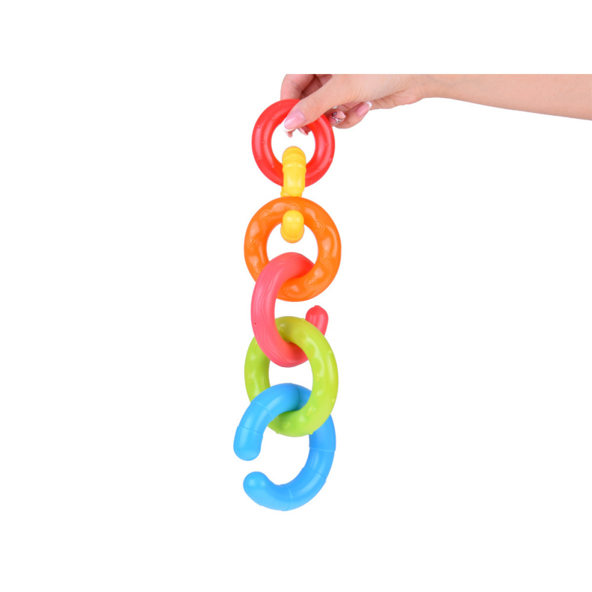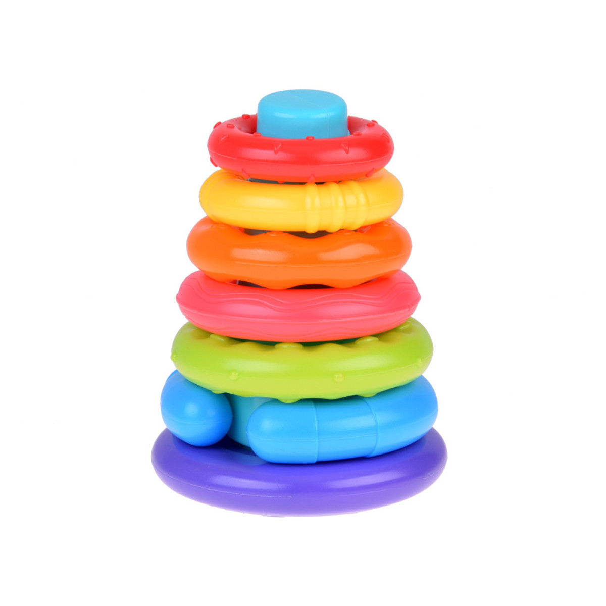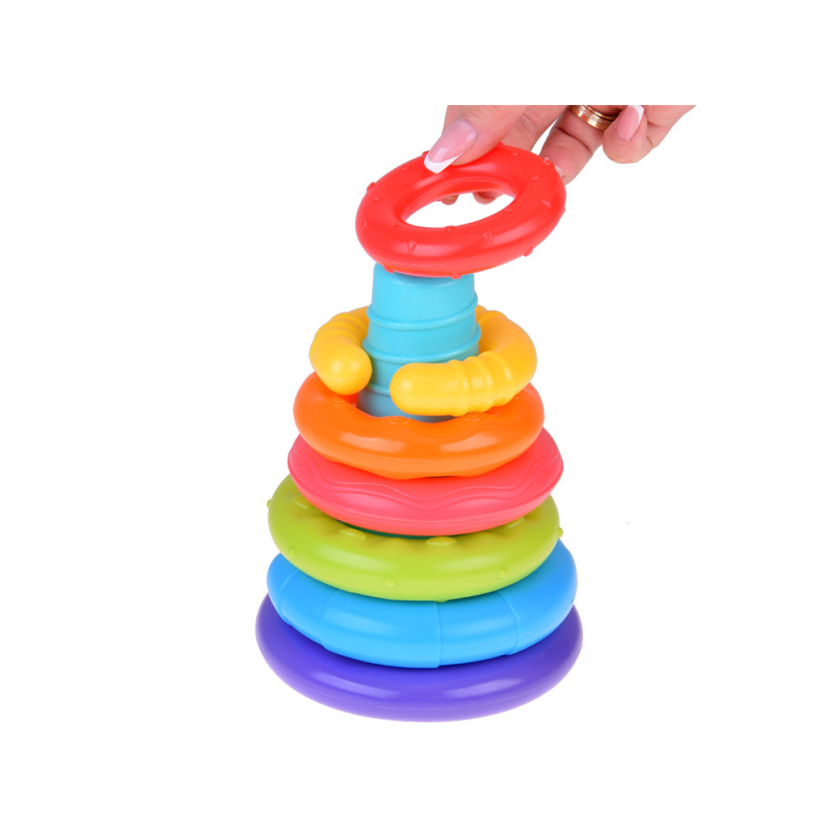 Sensory piramīda ir ideāli piemērota bērniem no 6 mēnešu vecuma. Krāsaina torņa, kas sastāv no sešiem elementiem ar dažādiem rakstiem un tekstūrām, piesaistīs jūsu bērna uzmanību un apmierinās viņa zinātkāri par pasauli. Rotaļlieta ne tikai stimulē bērna iztēli, bet arī veicina redzes un motorikas koordināciju. Gredzeni ir izgatavoti no mīksta plastmasas. Dažādas tekstūras un krāsas stimulē jūsu bērna maņu attīstību un mudina uz turpmākiem atklājumiem.