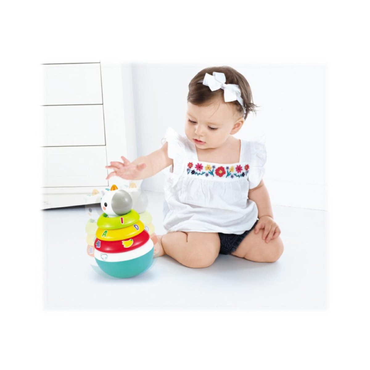 - 6+ mēneši: rotaļlietas noapaļotā platforma ļauj to izmantot kā "vanku vstanku", un šūpošanās laikā tā rada patīkamu grabēšanas skaņu. Tas māca bērnam cēloņu un seku sakarību.