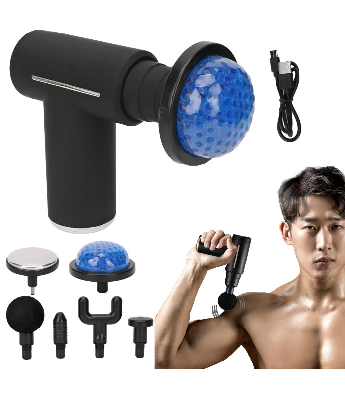 Masāžas pistole ķermenim MASSAGE GUN + 6 maināmi uzgaļi