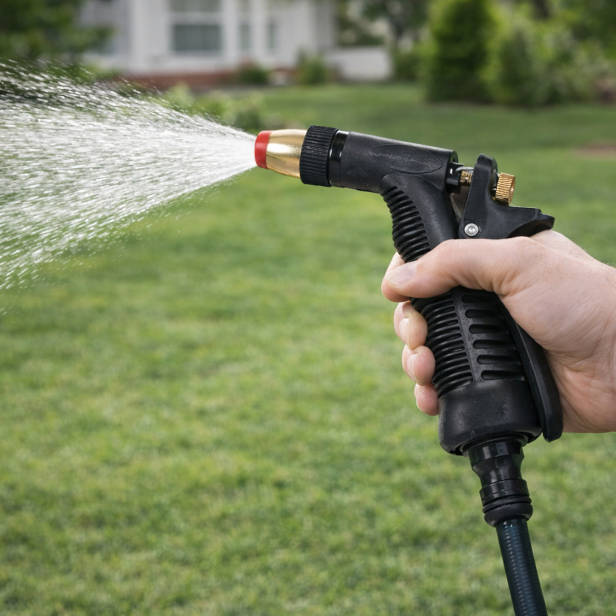 Dārza šļūtenes laistīšanas pistole ar regulējamu smidzinātāju