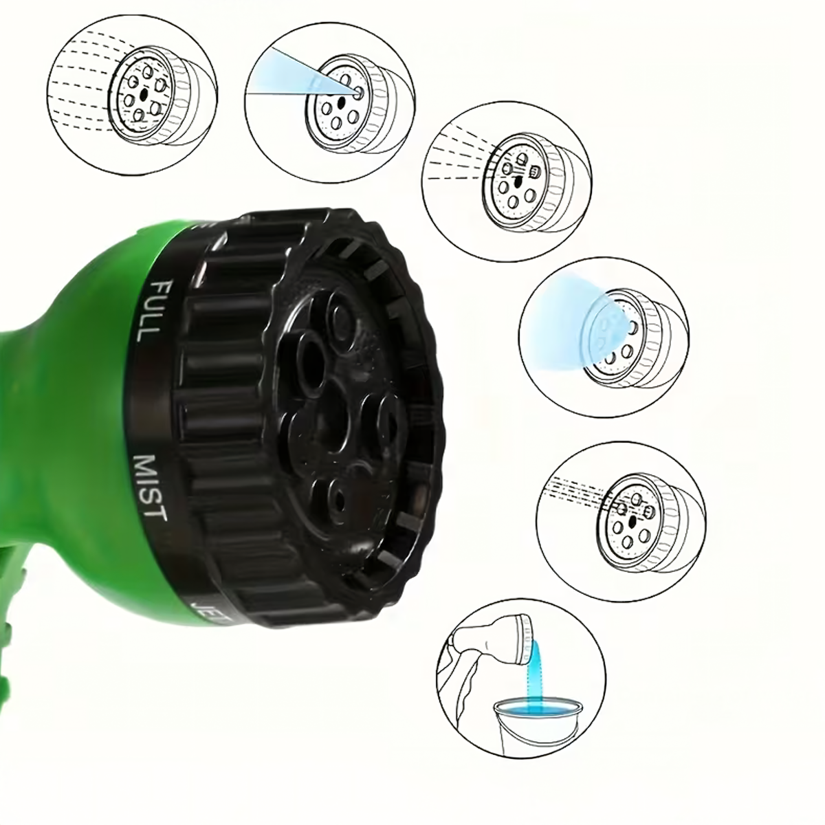 Regulējams dārza šļūteņu smidzinātājs ar 6 režīmiem