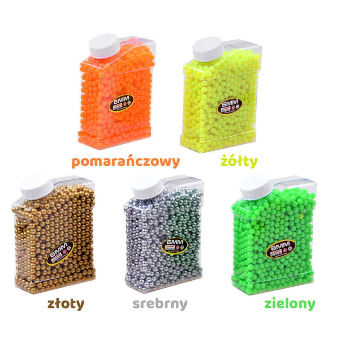 Ražotājs piedāvā veselu iepakojumu ar 6 mm plastmasas lodītēm.