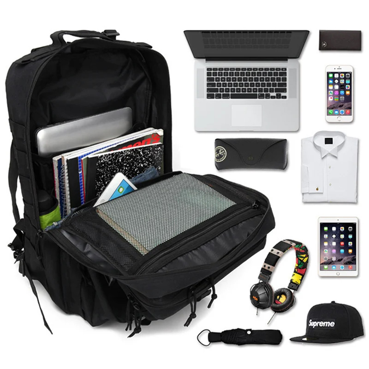 Funkcionāla un uzticama, aprīkota ar nodalījumiem un kabatām, aizverama ar rāvējslēdzējiem, ideāla mugursoma universālai lietošanai: pilsēta, izdzīvošana, militārie uzdevumi un tūrisms.