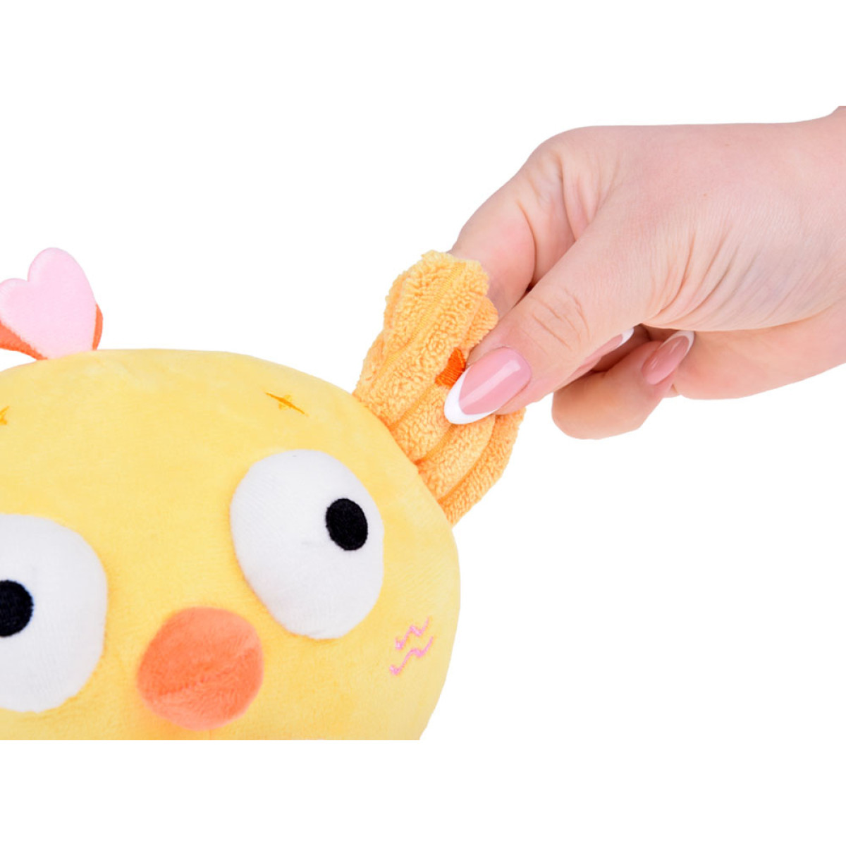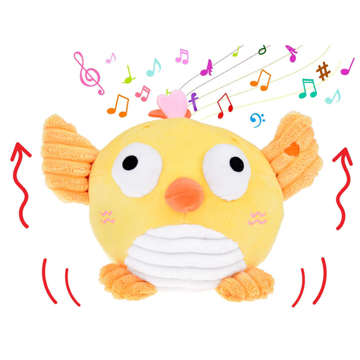 Pluszais cālis ar vibrācijas, skaņas ierakstīšanas un atkārtošanas funkciju ir lielisks rotaļu un mācību biedrs! Vienkārši piespied tam spārniņu, un bērns dzirdēs jautru melodiju vai ierakstīs pats sevi, un mīkstā rotaļlieta to atkārtos.