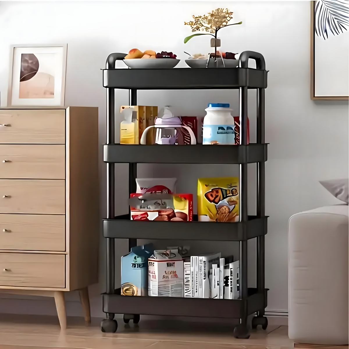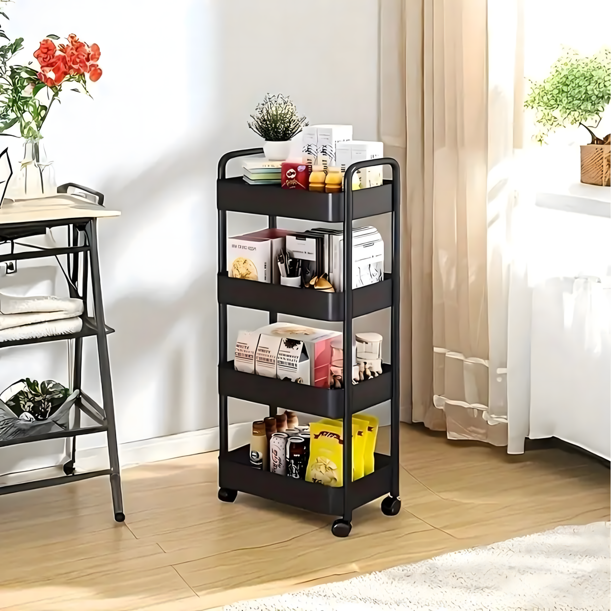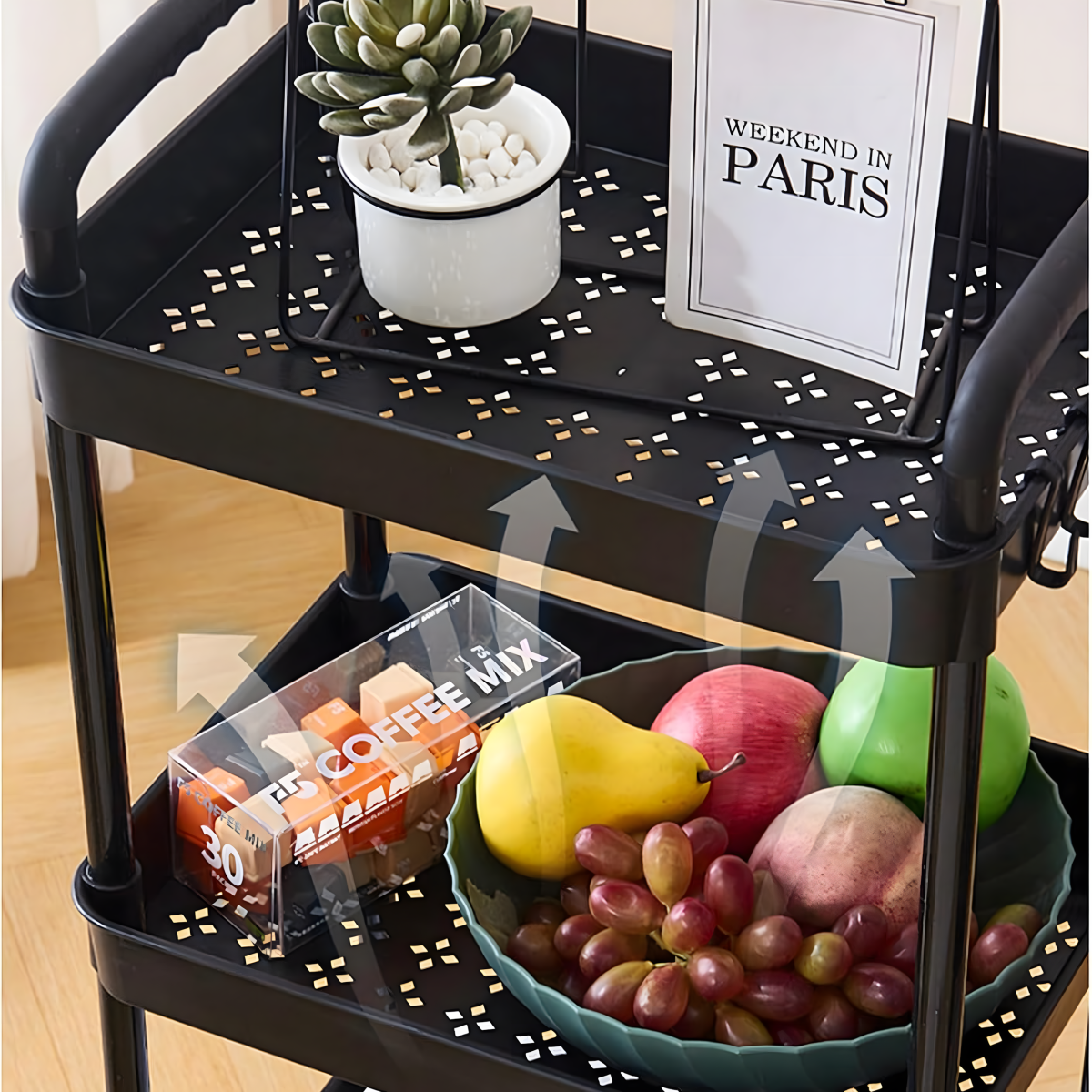 Ideāls veids, kā sakārtot vannas istabu, virtuvi vai jebkuru citu telpu, kurai nepieciešams papildu uzglabāšanas vieta! Mūsu mobilais plaukts uz riteņiem ir universāls risinājums, kas lieliski piemērots jebkuram interjeram, apvienojot funkcionalitāti ar modernu dizainu.