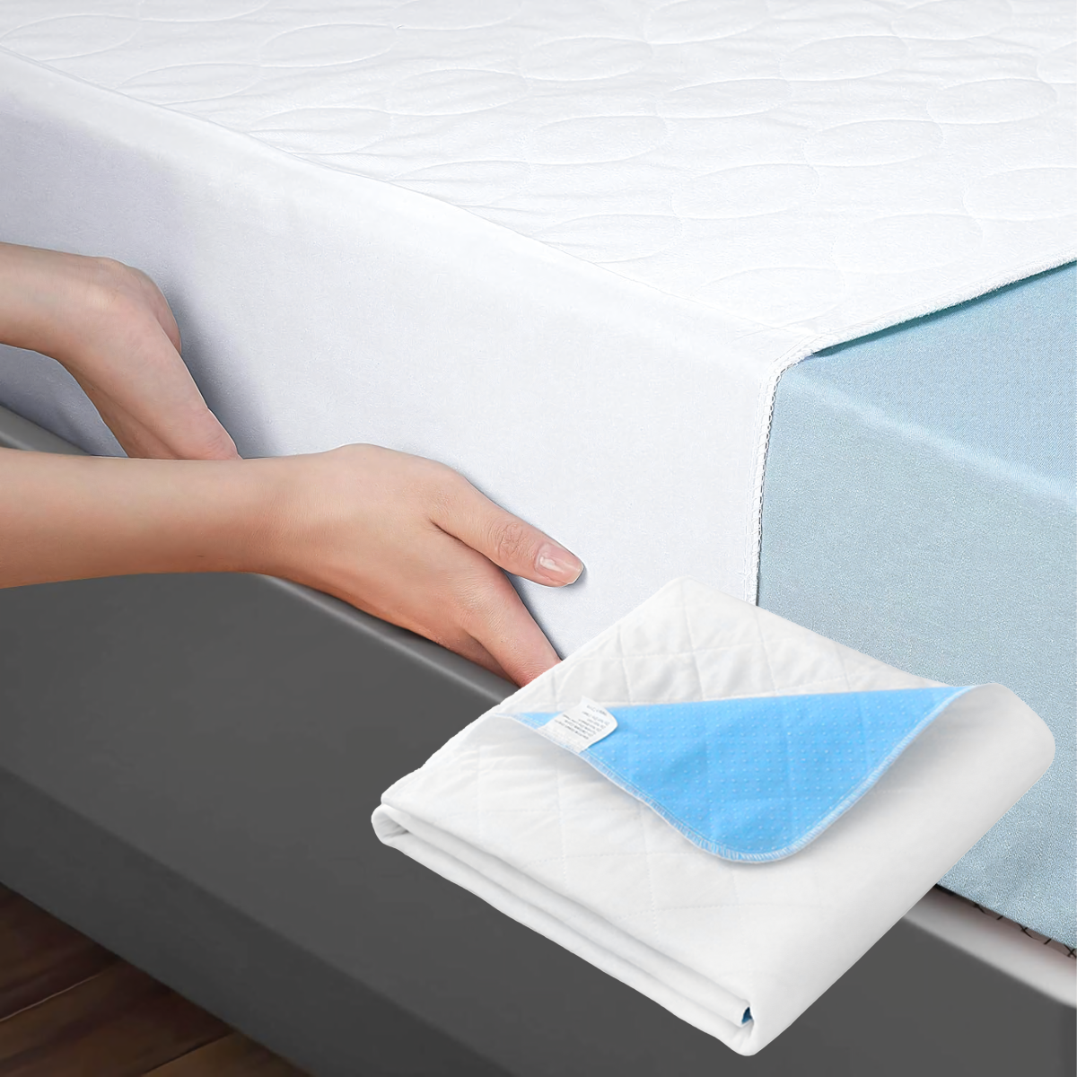 Atkārtoti lietojama higiēniskā pamatne 61x46 cm – ūdensnecaurlaidīga, mīksta un ērta, ideāli piemērota gultām, krēsliem un ratiņiem. Tā iztur līdz pat 300 mazgāšanas reizēm 95°C temperatūrā, aizsargā matraci un nodrošina lietošanas komfortu mājās, slimnīcā vai ceļojumā.