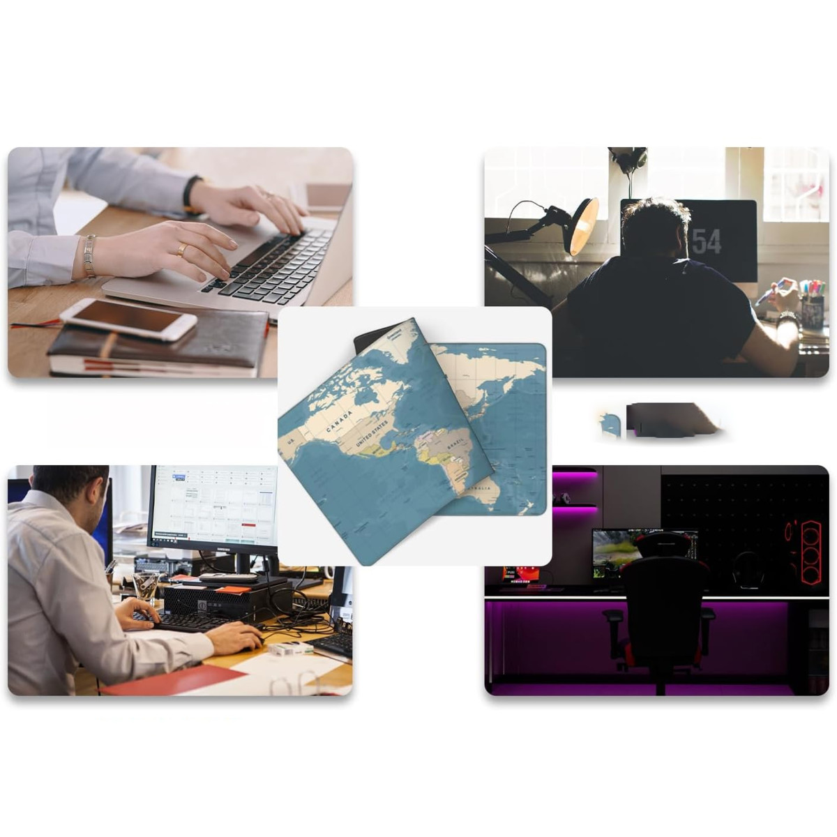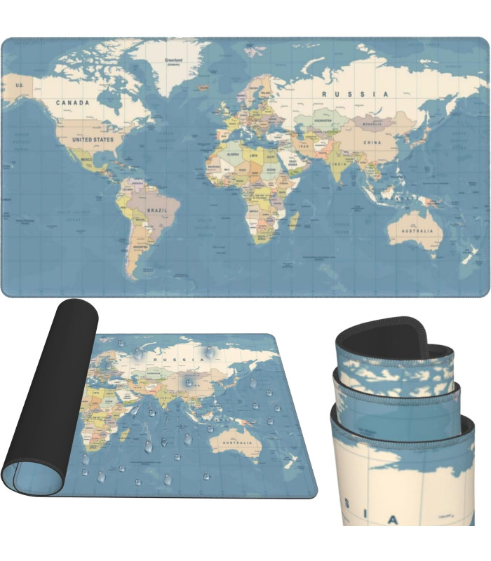 Paklājiņš ir ļoti izturīgs, tam ir pievilcīgs pasaules kartes drukājums, kas padarīs darbu patīkamāku un bērniem ļaus papildus mācīties pasaules ģeogrāfiju.