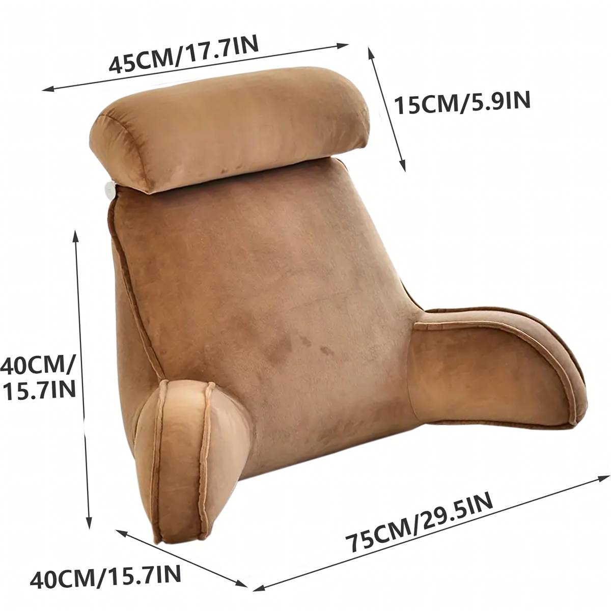 Lasīšanas spilvens 75x40x40 cm ar roku balstiem un kakla atbalstu – ideāli piemērots gultai, dīvānam un krēslam.
