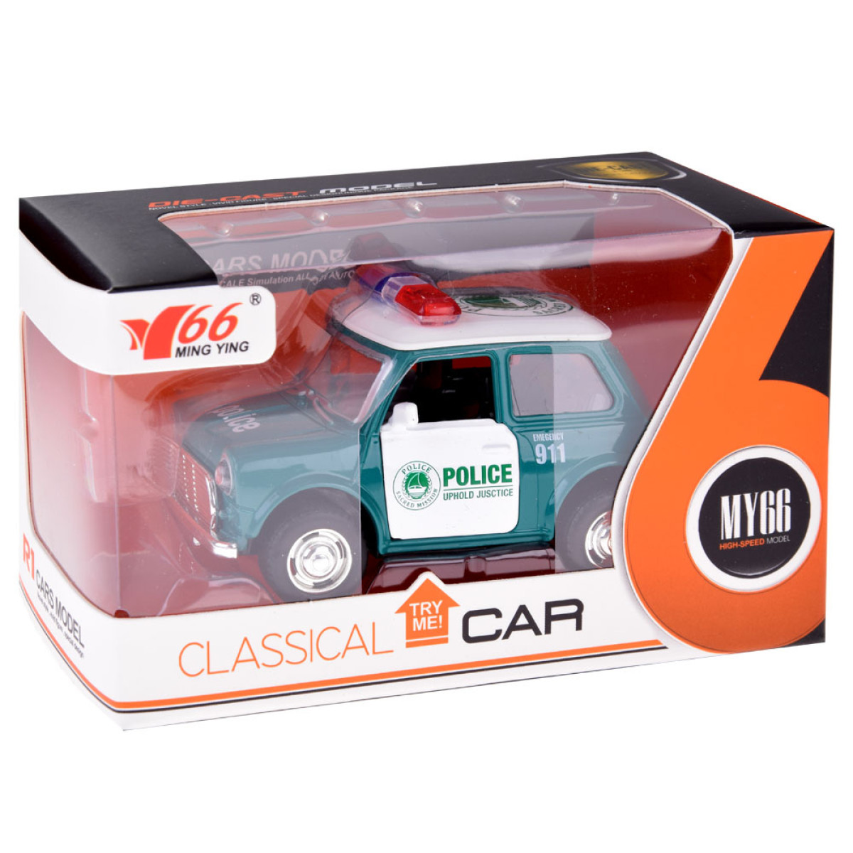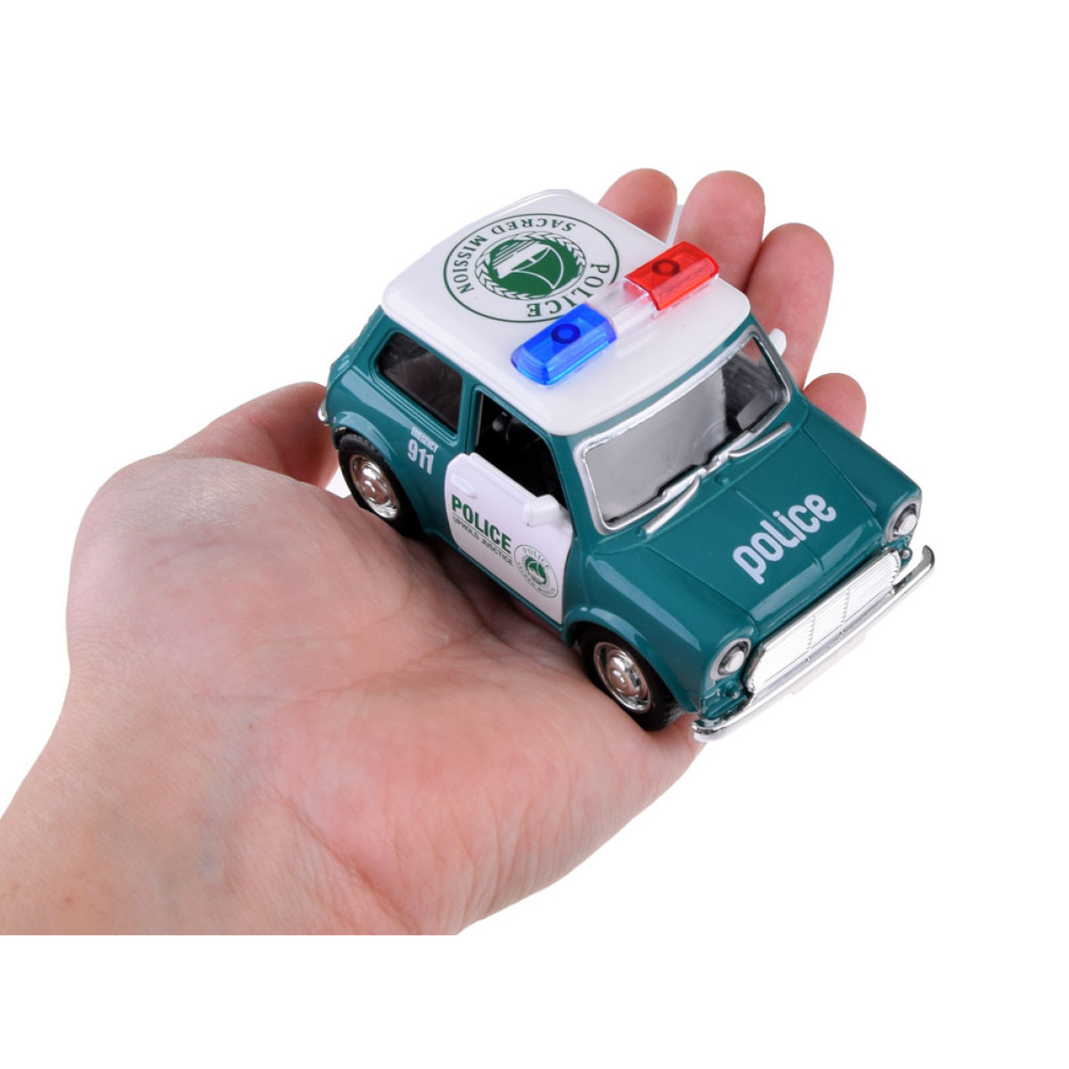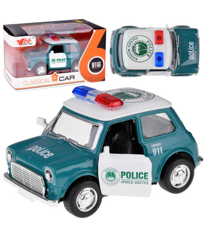 Metāla auto ar gumijas riepām un atveramām durvīm ir lielisks papildinājums jebkuram policijas garāžam un ne tikai. Auto pilnībā izgatavots no metāla ar atveramām durvīm. Pateicoties kompaktajam izmēram, tas lieliski iederēsies bērna mazajās rociņās. Auto ir rūpīgi un estētiski izgatavots, tas noteikti piesaistīs ikviena mazā kolekcionāra uzmanību. Mazs, bet elegants modelis nav nepieciešamas baterijas, tas pārvietojas pateicoties pull-back mehānismam - pavelc atpakaļ un atlaid. Auto noteikti piesaistīs gan bērnu, gan kolekcionāru skatienus.