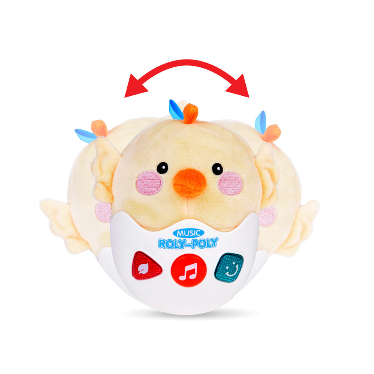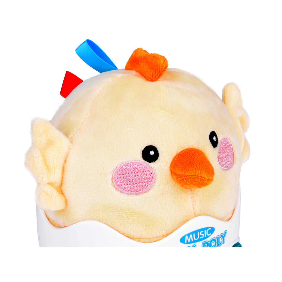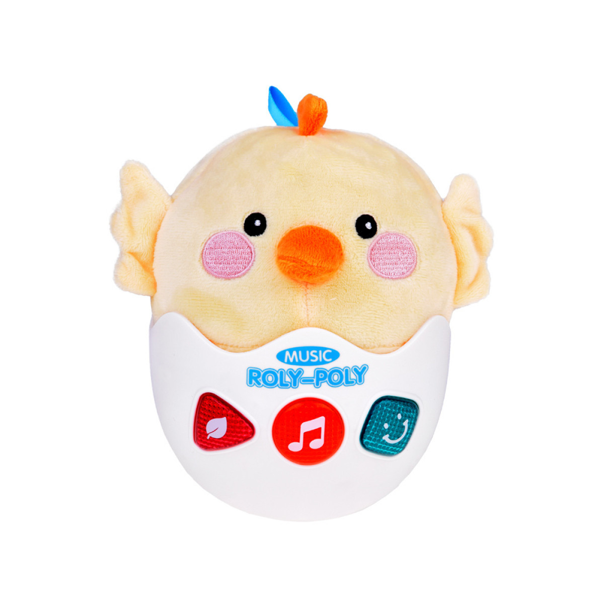 Šis interaktīvais cālītis ir jautra un muzikāla rotaļlieta, kas patiks gan bērniem, gan vecākiem. Cālītis ir saules krāsā, ar mazām spārniņām, apaļām acīm, rozā knābi un oranžu knābi. Puse no rotaļlietas ir izgatavota no mīksta, patīkama pieskārienam materiāla, savukārt otra puse ir plastmasas apvalks ar krāsainām pogām. Pateicoties tā gludajai formai, putniņš var griezties visos virzienos, ja to viegli pamudināt.