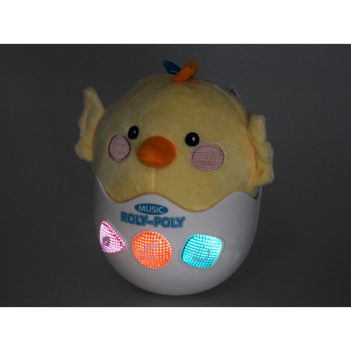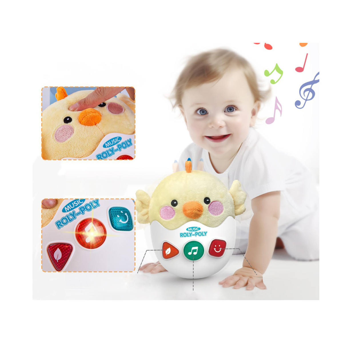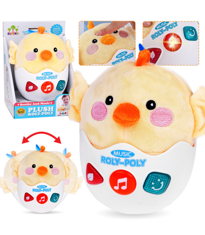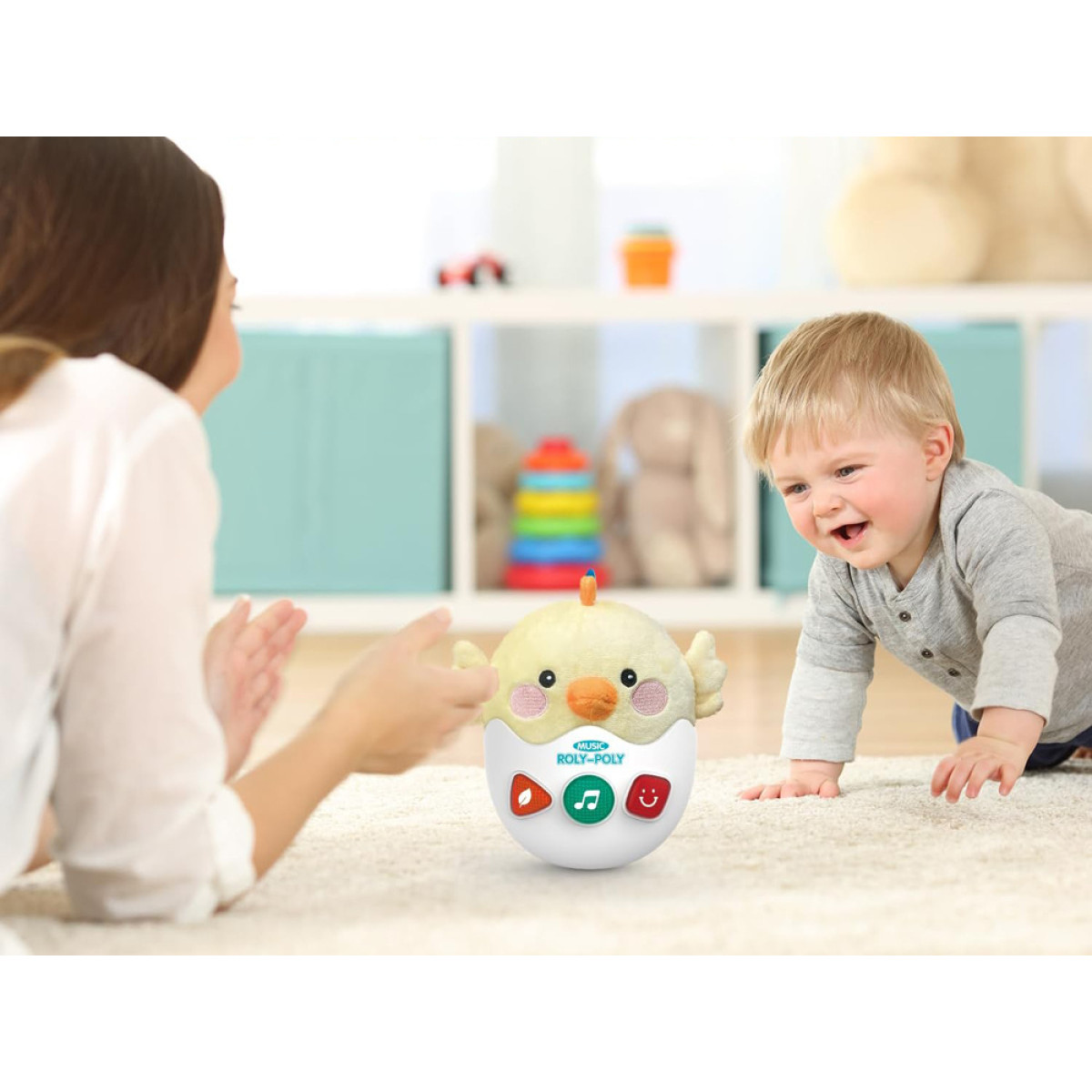 Šis interaktīvais cālītis ir jautra un muzikāla rotaļlieta, kas patiks gan bērniem, gan vecākiem. Cālītis ir saules krāsā, ar mazām spārniņām, apaļām acīm, rozā knābi un oranžu knābi. Puse no rotaļlietas ir izgatavota no mīksta, patīkama pieskārienam materiāla, savukārt otra puse ir plastmasas apvalks ar krāsainām pogām. Pateicoties tā gludajai formai, putniņš var griezties visos virzienos, ja to viegli pamudināt.