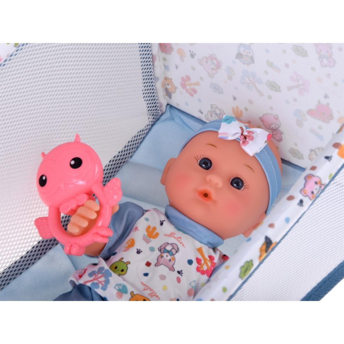 Prabangus kūdikio lėlės rinkinys, vežimėlis, lopšys, maitinimo kėdutė, priedai, 16 vnt., ZA5917