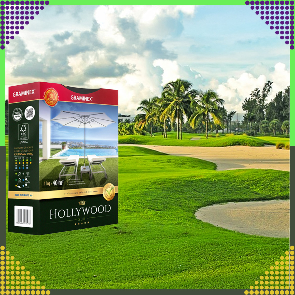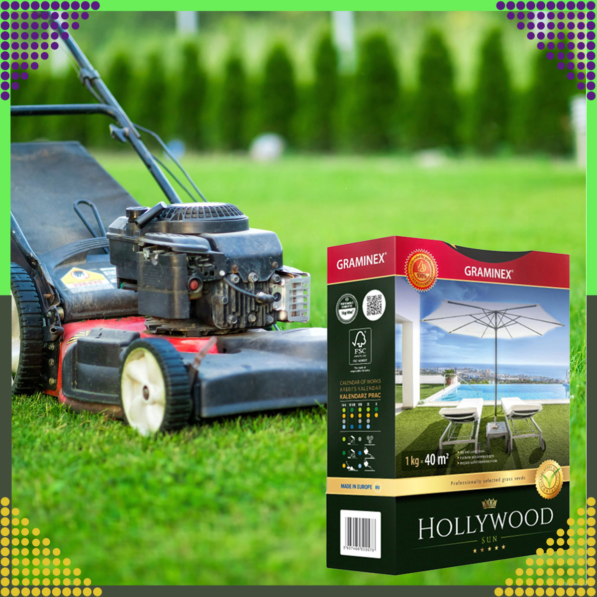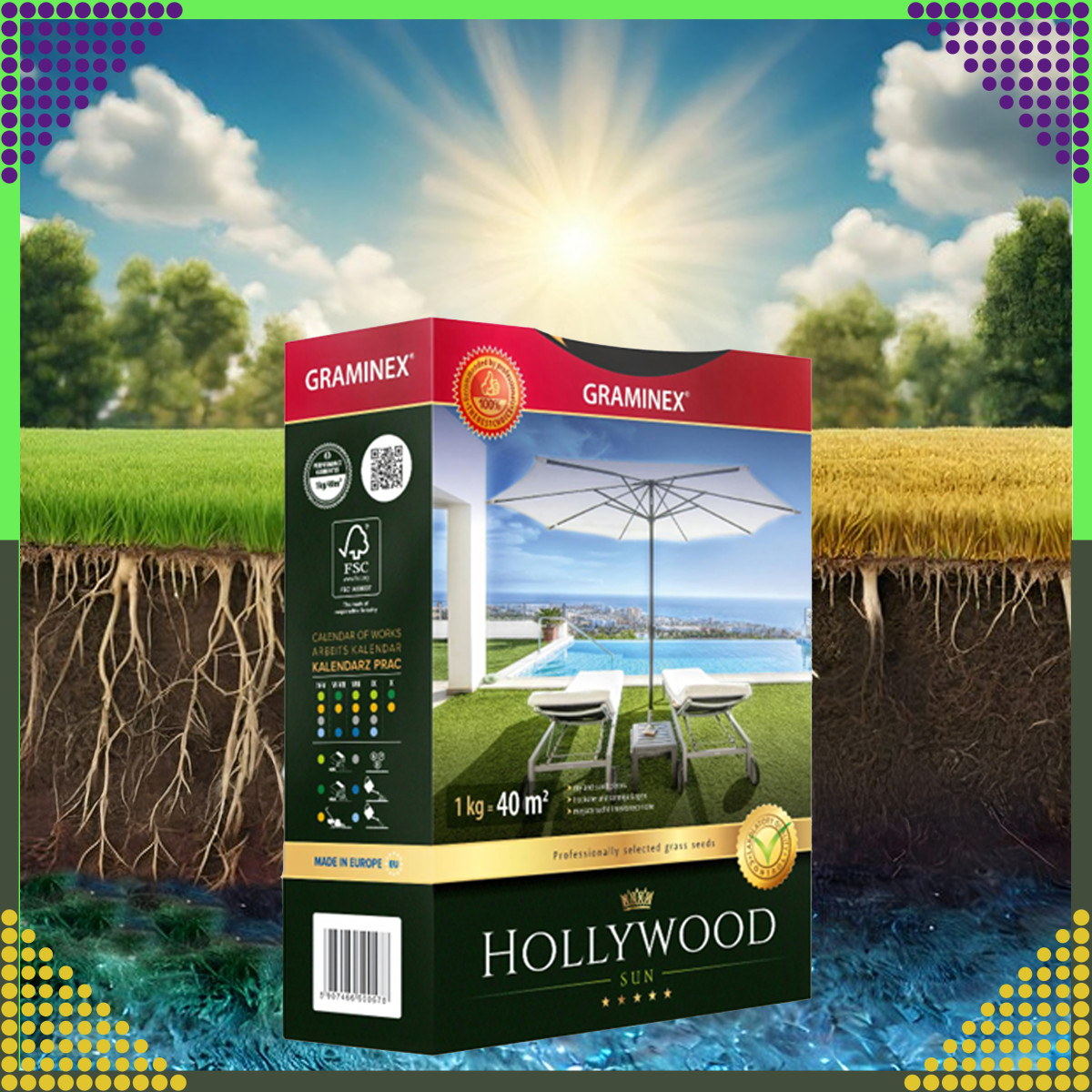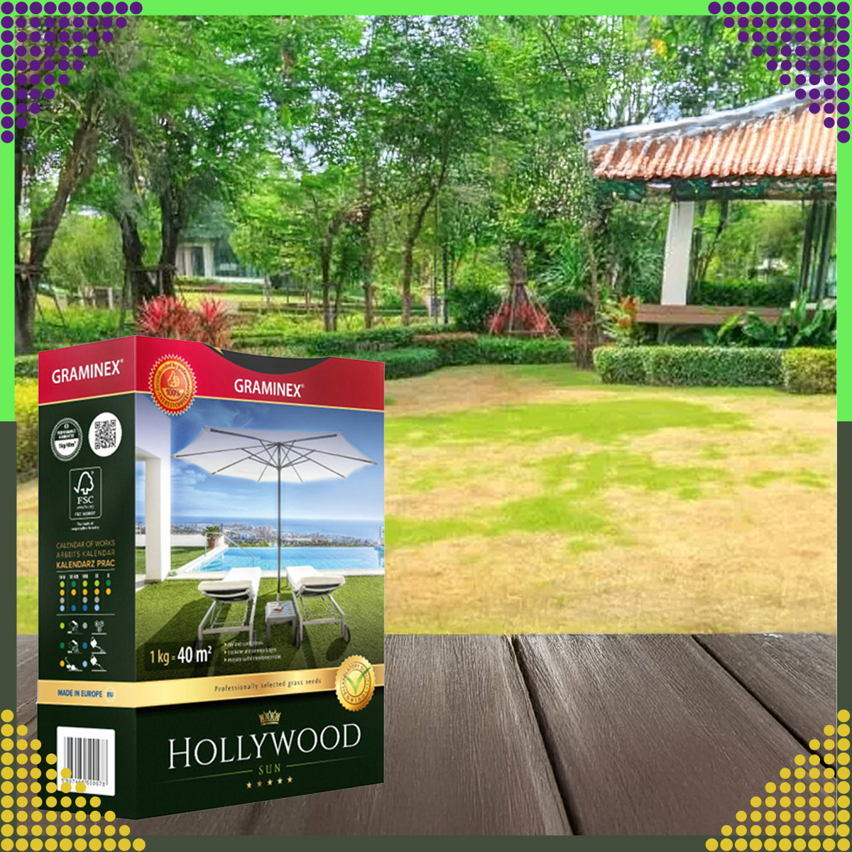Premium zāles sēklu maisījums HOLLYWOOD 1kg ir piemērots sausām un saulainām vietām. Universālais zāles sēklu maisījums 5 kg aptver līdz pat 200 m² un ir ideāls gan lietošanas, gan dekoratīvajiem zālājiem. Tas satur izturīgas zāles šķirnes, kas nodrošina blīvu, zaļu mauriņu, kas ir izturīgs pret izbradāšanu un laikapstākļiem. To ir viegli kopt, un tas ātri izplešas. Sēšanas laiks: marts-aprīlis. Garantē skaistu mauriņu!