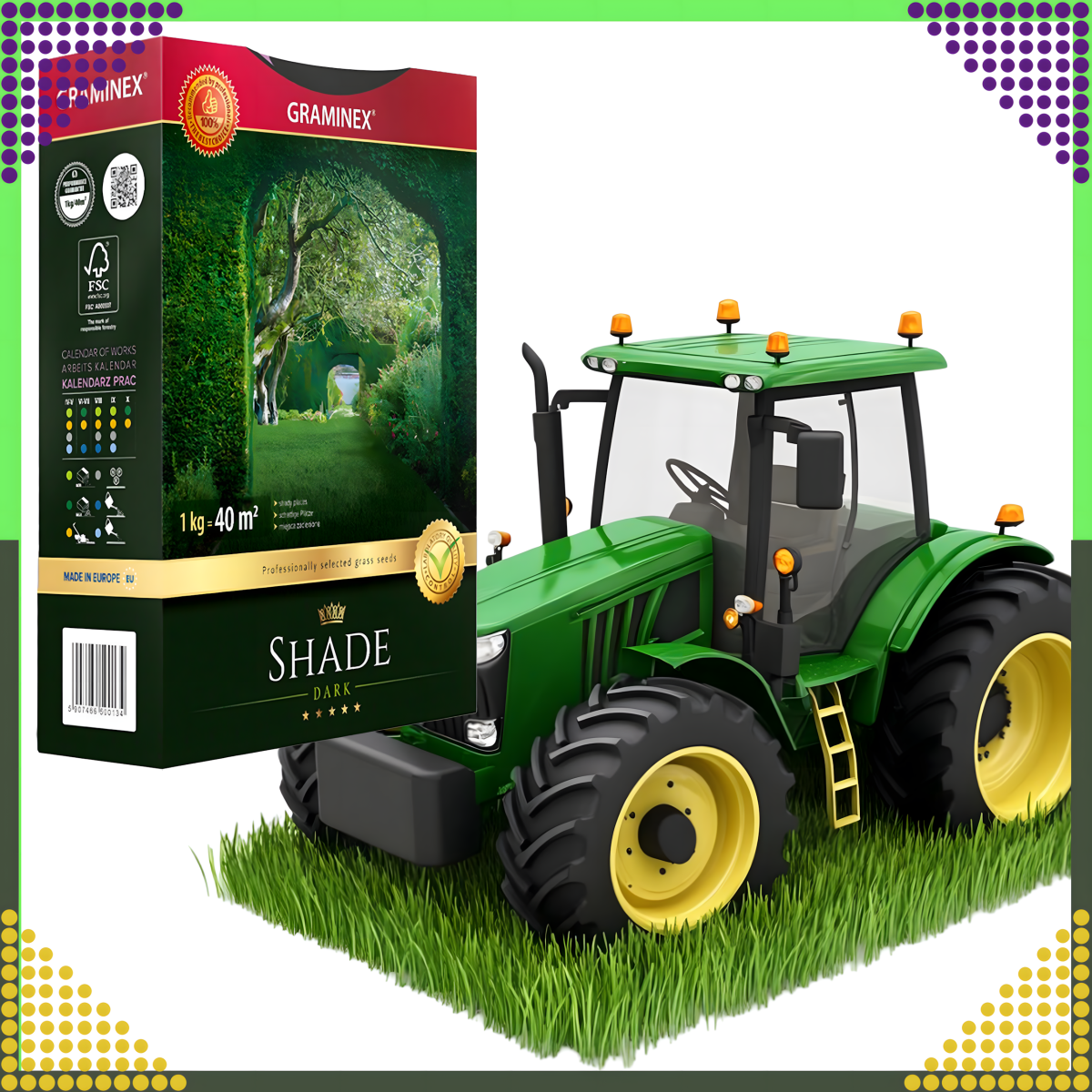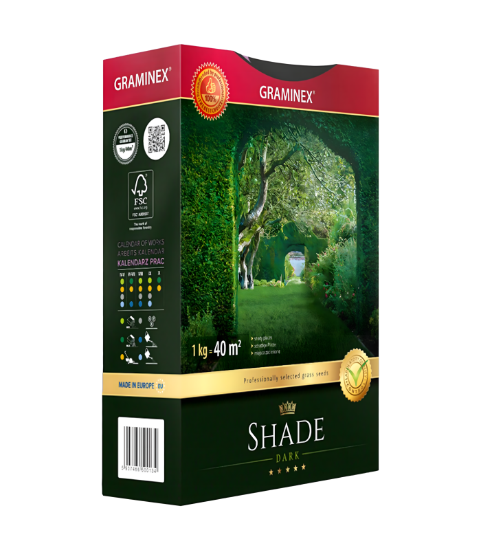 Premium zāles sēklu maisījums SHADE 1kg 40m ēnainām vietām ir ideāls risinājums, lai iegūtu blīvu, zaļu zālienu pat zem kokiem vai ēnainos dārzos.