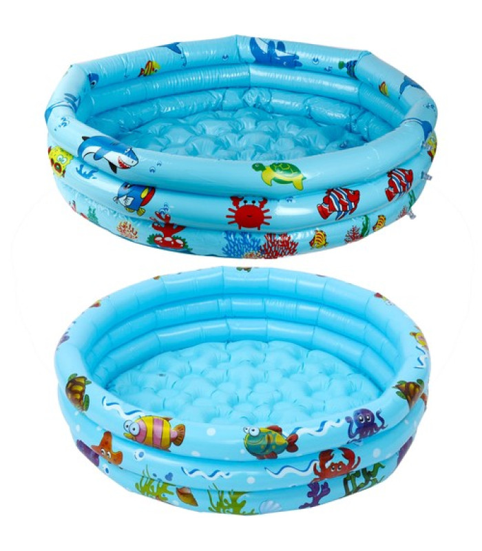 - Specifikācija – materiāls: PVC, krāsa: zila/daudzkrāsaina, tilpums: 58 l, forma: apaļa, izmēri: 80 x 30 cm, svars: 508 g.