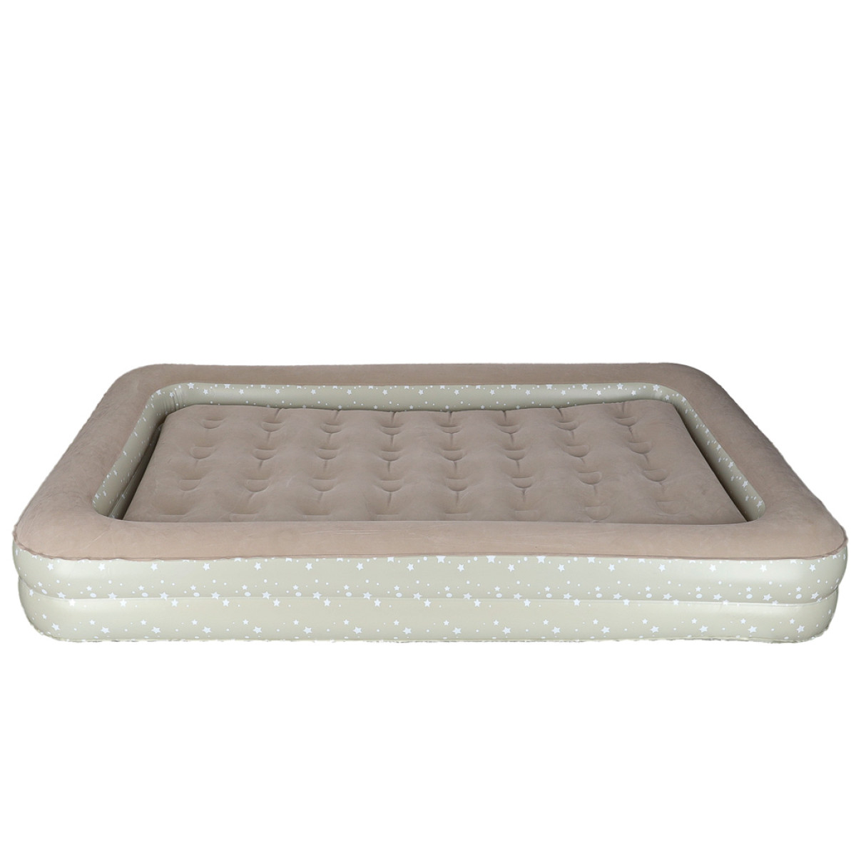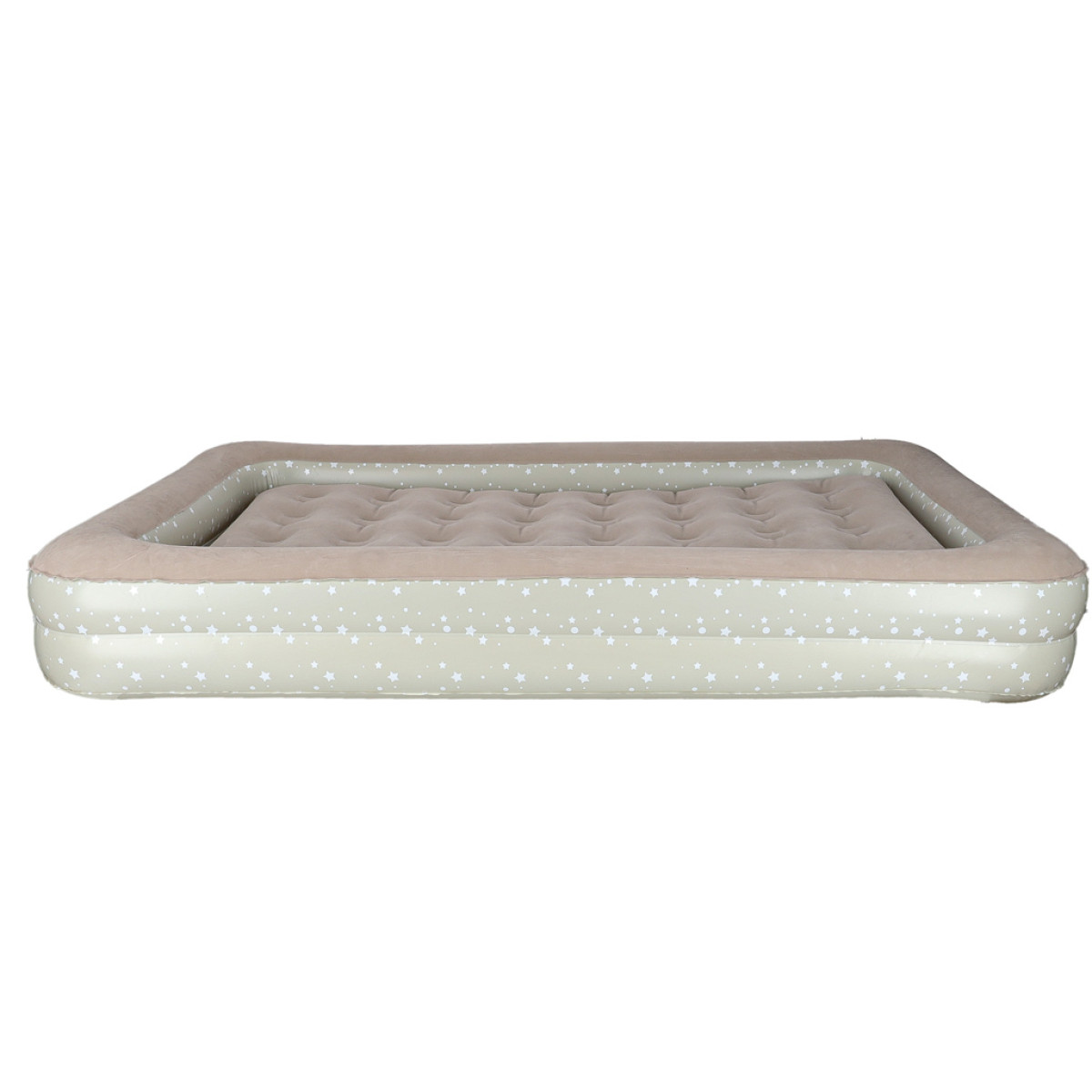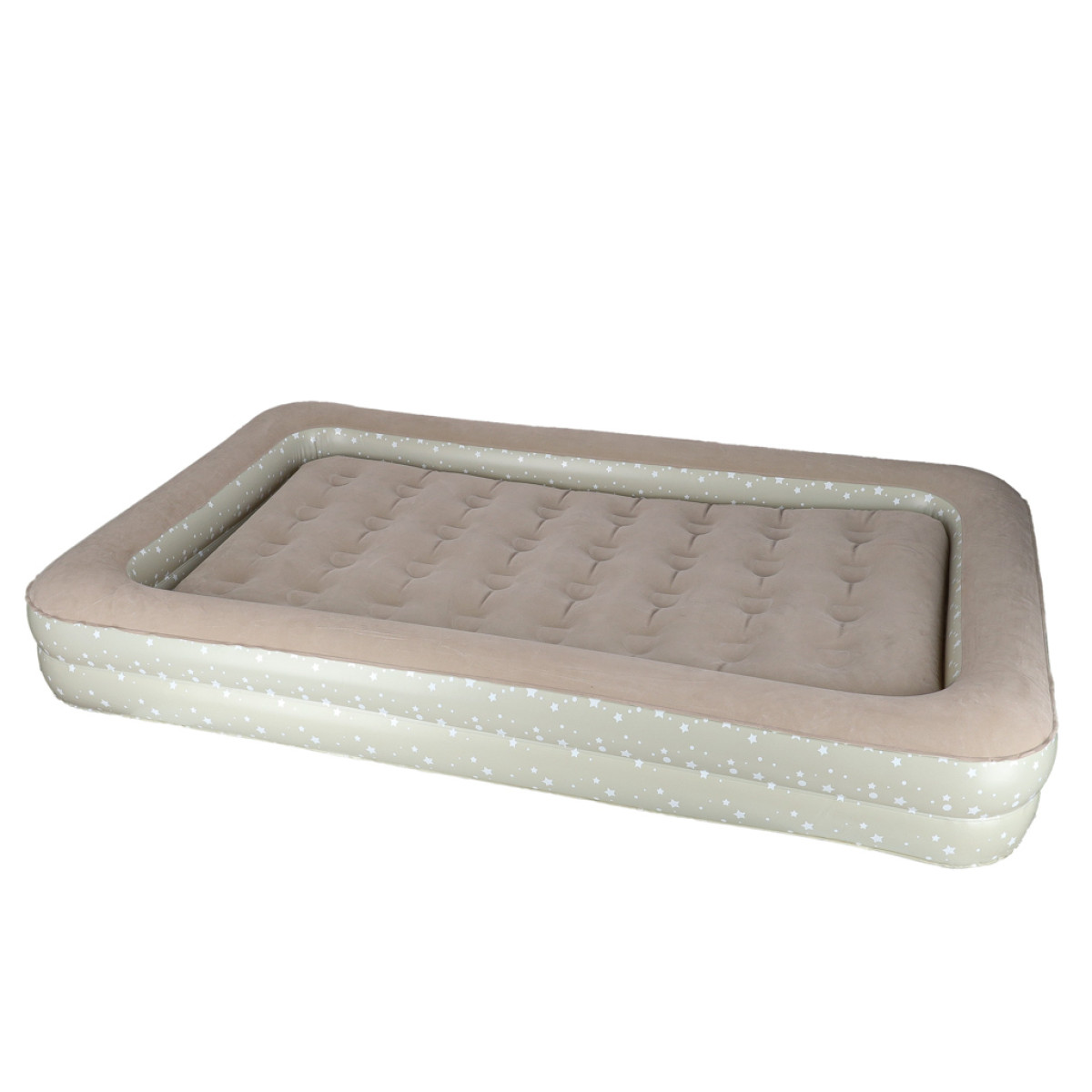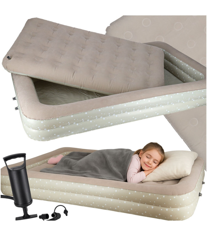 Piepūšamais matracis bērniem ir praktisks un ērts. Tam ir praktiski divdaļīgi vārsti, kas atvieglo matrača piepūšanu un novērš pēkšņu gaisa izplūšanu. Matracis izgatavots no izturīga PVC materiāla – virspusē tam ir mīksta velūra faktūra, bet sānos ir sīku zvaigžņu raksts.
