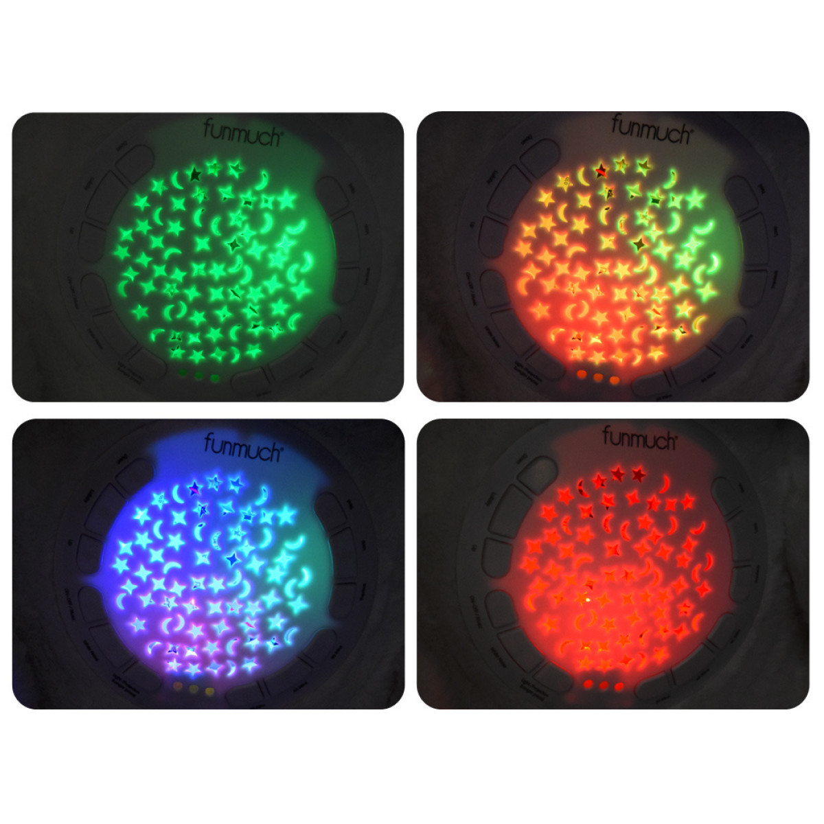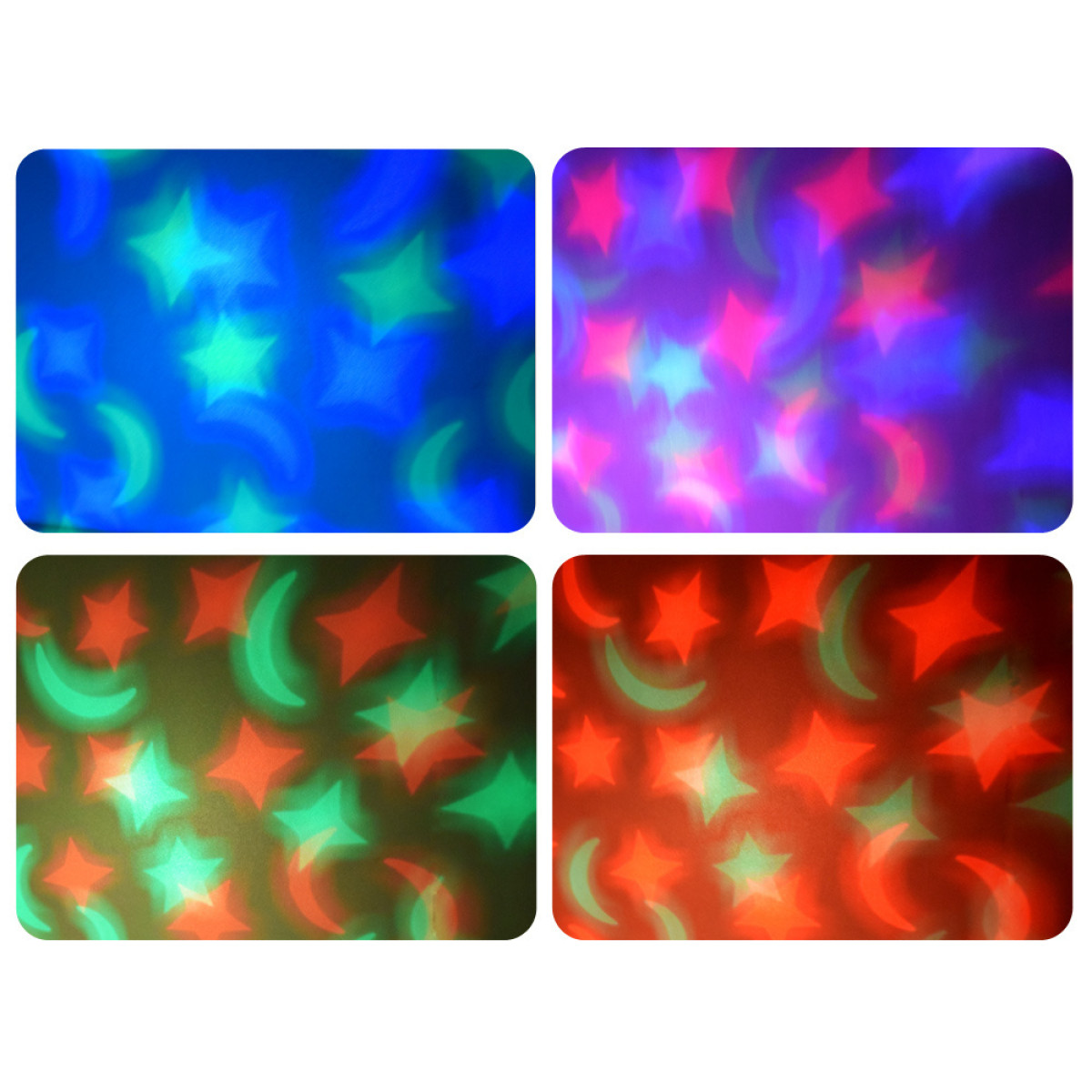 Projektora funkcija rotaļlietā satur krāsainas varavīksnes toņus, piemēram: sarkans, rozā, zaļš, oranžs un zils. Visas krāsas skaisti saplūst kopā, veidojot maģisku, krāsainu pasauli. Šāds projektors ideāli piemērots miega laikā, lai izkliedētu puskrēslu.