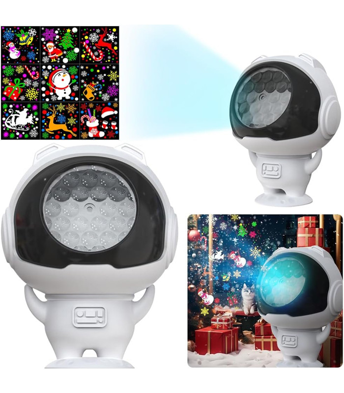 Astronautu LED lāzera projektors bērniem ir unikāls produkts jūsu mājām. Tas apgaismo telpu ar skaistām zvaigžņu projekcijām un rada siltu svētku atmosfēru ar unikāliem motīviem kā sniegpārslas, ziemeļbrieži, sniega vīri un Ziemassvētku vecītis, kas ir ideāla ziemas dekorācija jūsu ģimenei un draugiem.