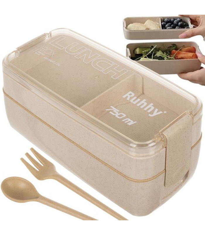 - Augstas kvalitātes materiāli - pusdienu kastīte ir izgatavota no ekoloģiskiem un drošiem pārtikas materiāliem, piemēram, kviešu salmiem. Šis materiāls ir ne tikai videi draudzīgs, bet arī izturīgs, noturīgs pret bojājumiem un viegli tīrāms. Pateicoties dabisko materiālu izmantošanai, pusdienu kastīte ir viegla un ērta pārnēsāšanai, padarot to par ideālu risinājumu ikdienas maltītēm darbā, skolā vai izbraucienos.