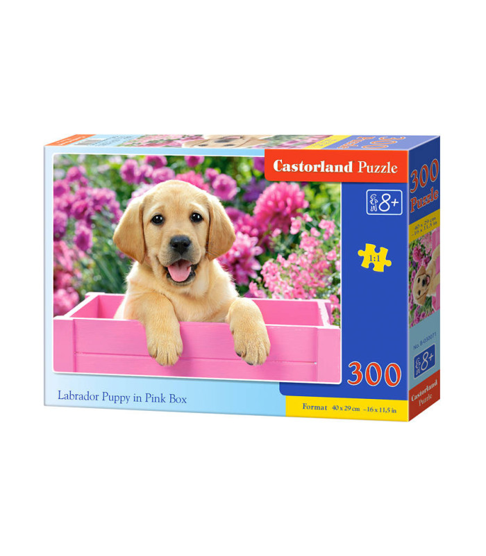 Puzzle 300 gabali Labradora kucēns rozā kastē