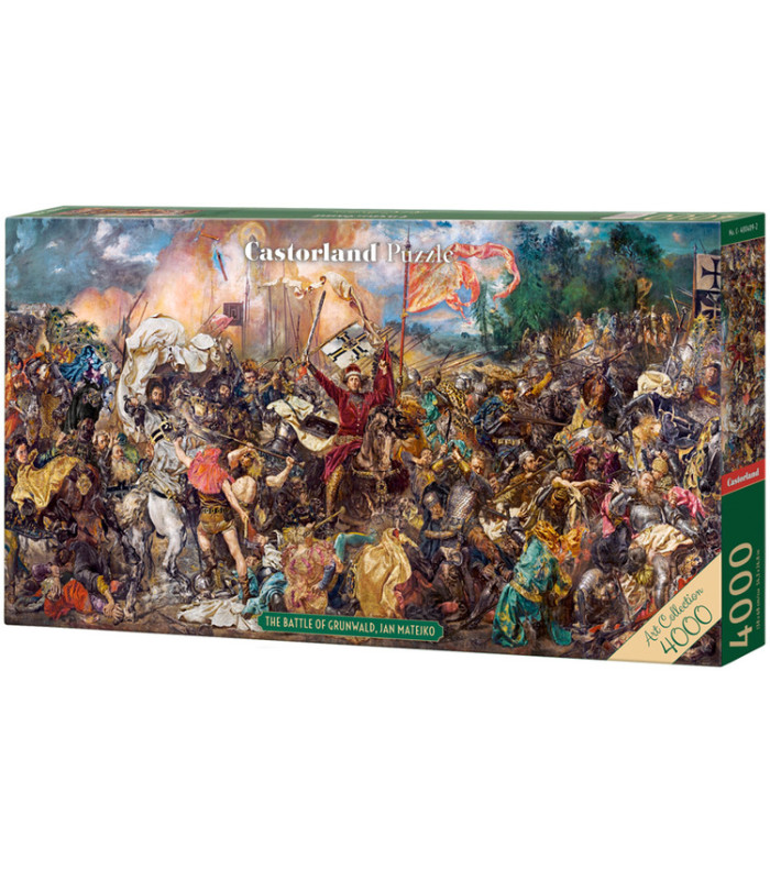 Puzzle Castorland Art Collection – “Kauja pie Grunvaldes” ir iespaidīga puzle, iedvesmota no viena no slavenākajiem poļu vēsturiskās glezniecības darbiem, ko radījis Jan Mateiko. Monumentālā kaujas aina no 1410. gada aizrauj ar savu vērienīgumu, personāžu bagātību un izcilu detaļu precizitāti, padarot to par ideālu motīvu pieredzējušiem puzles un mākslas cienītājiem.